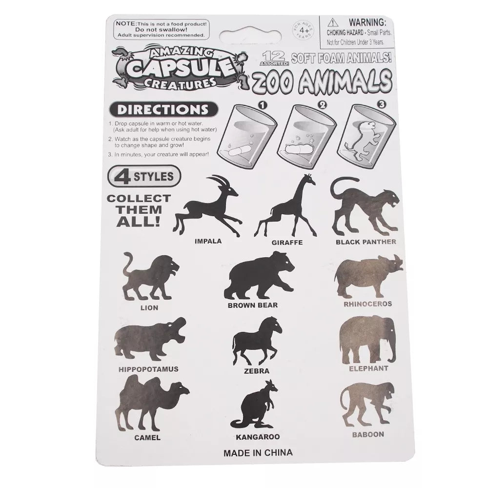 - Rinkinyje 12 vnt. kapsulių su zoologijos sodo gyvūnais.
