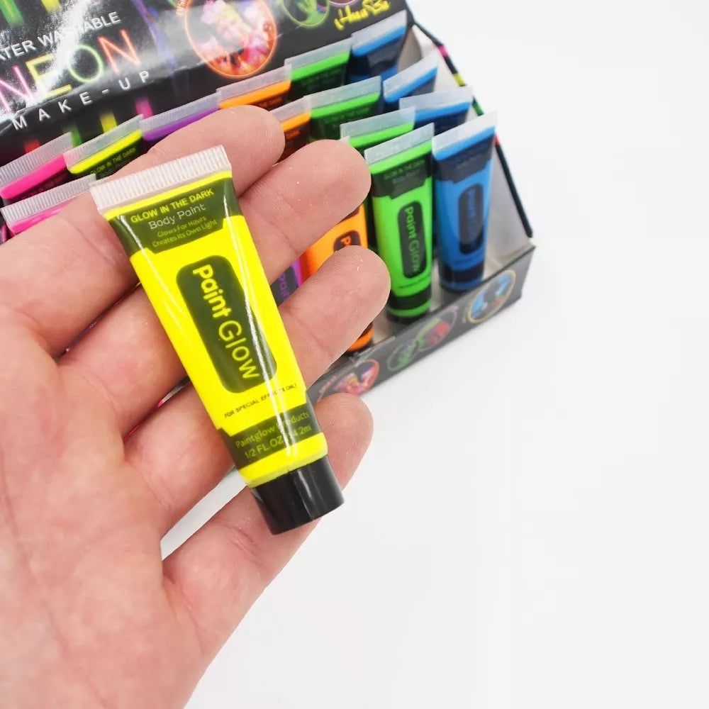 Šviečia tik UV apšvietime, ne TAMSOJE.