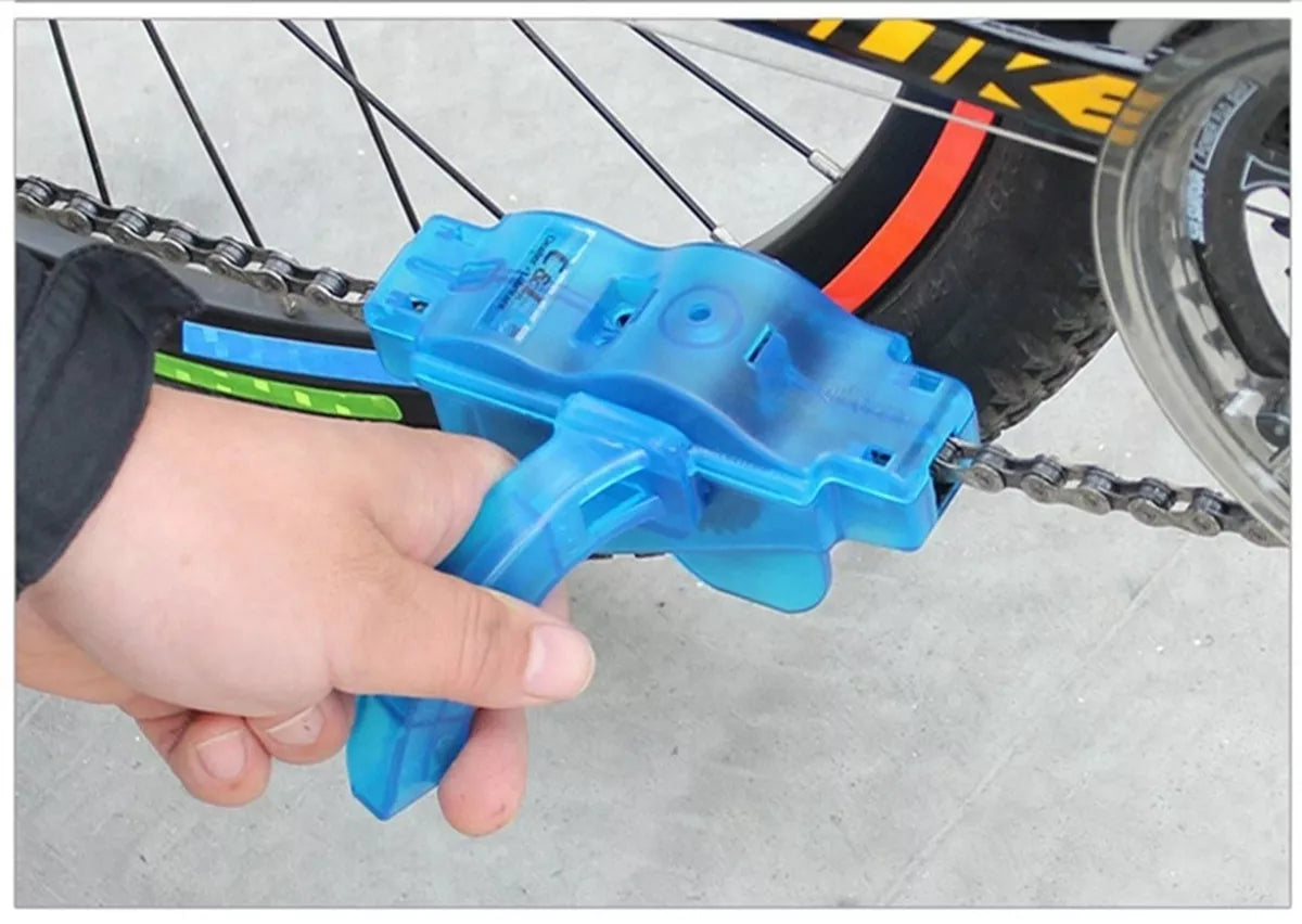 Universalus dviračio grandinės valymo įrenginys. Produktas itin naudingas kiekvienam dviratininkui – juk kiekvieną grandinę reikia nuvalyti ir sutepti.Tiksliai išdėstyti šepečiai (iki 6 vnt.) pasiekia kiekvieną grandinės kampą!Itin patvari kempinė pašalina nuo grandinės likusius nešvarumus.Įrankyje taip pat yra anga alyvai (grandinės tepimo funkcija).Tvirtas, permatomas plastikinis korpusas.Prietaisas gali būti greitai išardomas į atskiras dalis, todėl valymas yra daug lengvesnis!Korpuso spalva: mėlyna.Pakuotė: estetiška.