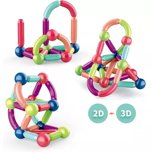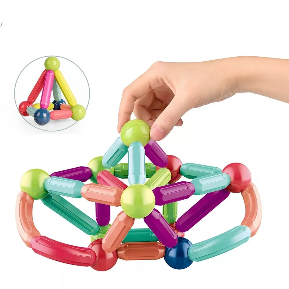 Magnetinių kaladėlių rinkinys mažiesiems statybininkams. Kaladėlės turi labai stiprius magnetus, kurie laiko vaikų sukurtas konstrukcijas. Žaisdami su kaladėlėmis vaikai lavina kūrybinį mąstymą ir rankinius įgūdžius. Tai puikūs susikaupimo, kantrybės ir motorinės koordinacijos pratimai.