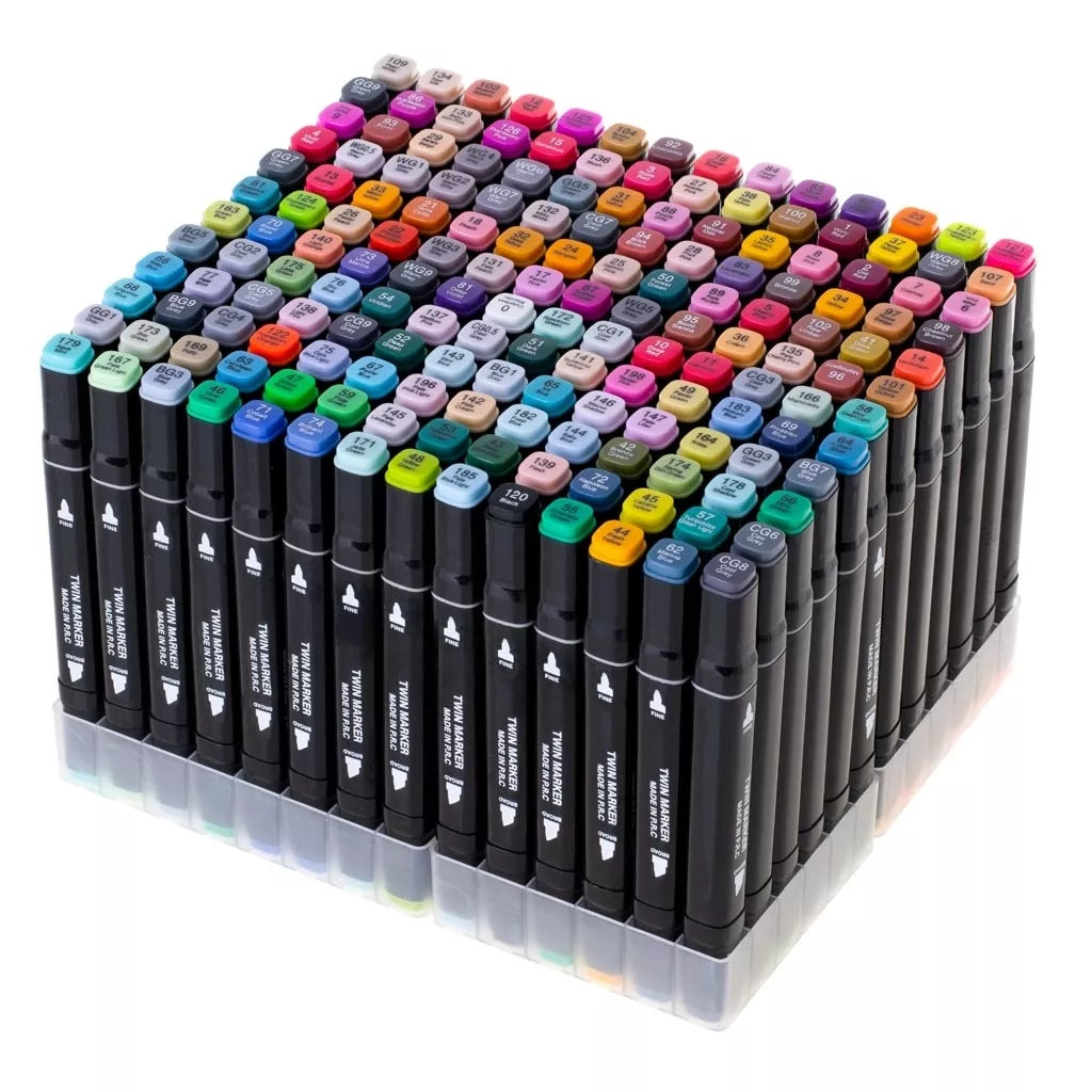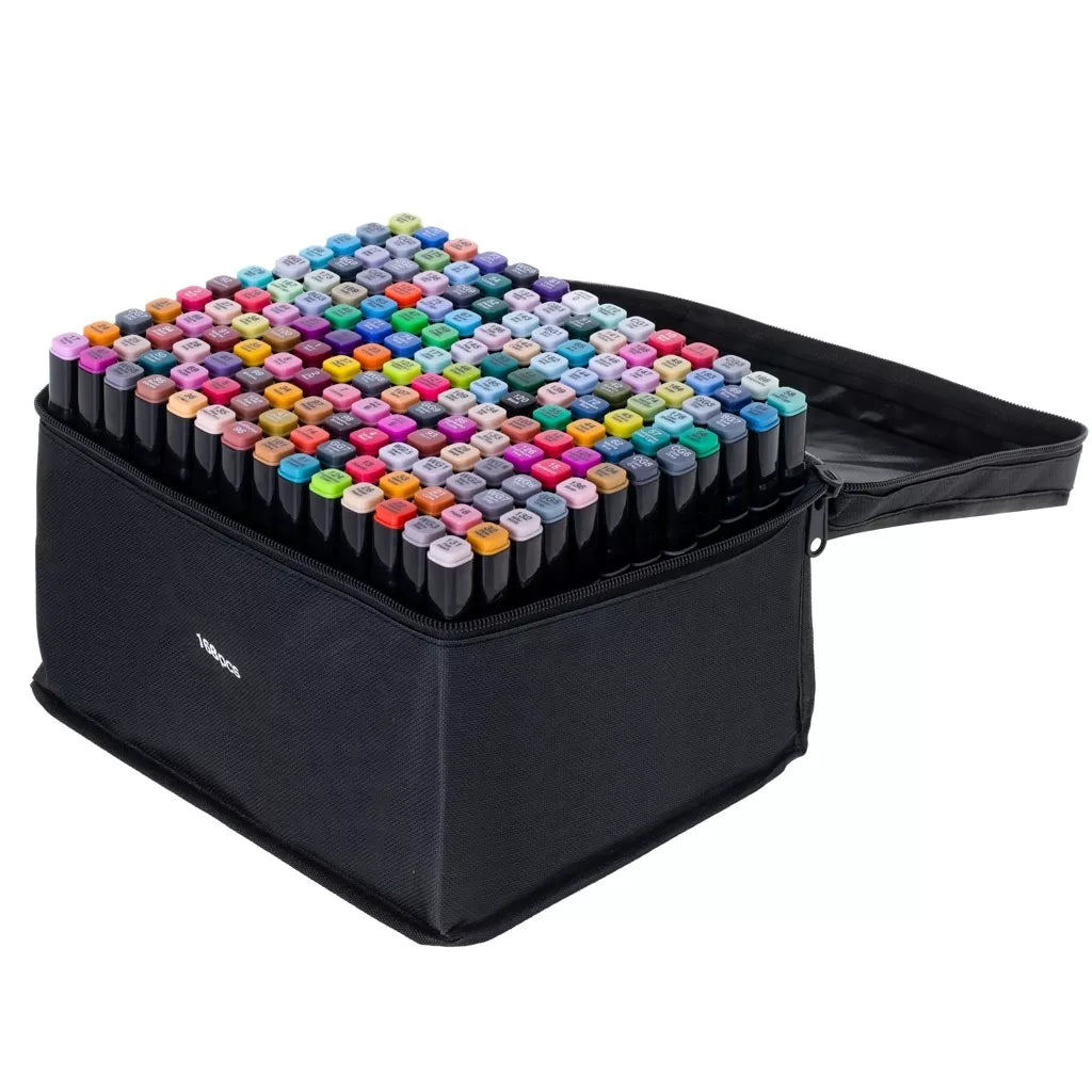 168 spalvų dvipusiai alkoholio pagrindo markeriai su stovu ir patogiu dėklu – kūrybos rinkinys, įkvėpsiantis kiekvieną!