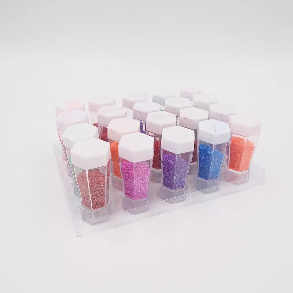 Birių blizgučių rinkinys rankdarbių ar nagų dekoravimui.Rinkinį sudaro 20 vnt. buteliukų.Vieno buteliuko talpa: 20 ml.