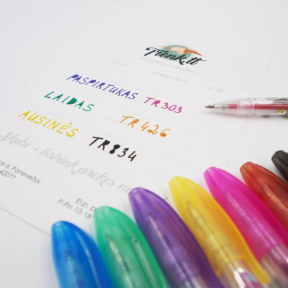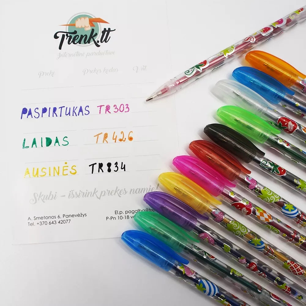 Kiekvienas iš raųiklių kvepia skirtingu kavpu.Spalvoti rašikliai supakuoti į plastikinį dėklą.Kiekis: 12 vnt. skirtingų spalvų rašiklių.