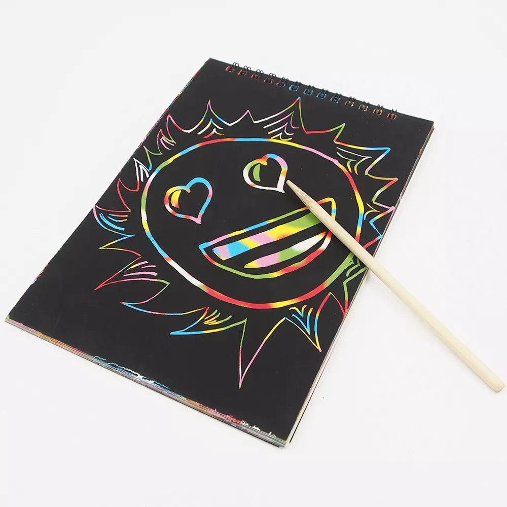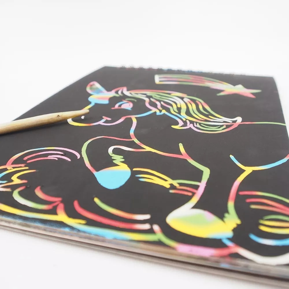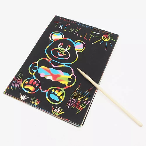 - Subraižomas popierius leidžia vaikams lengvai sukurti spalvingus dizainus.