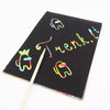 - Naudokite medinį pagaliuką, kad nubrauktumėte juodą matinį popieriaus paviršių, atskleisdami ryškias vaivorykštės spalvas!