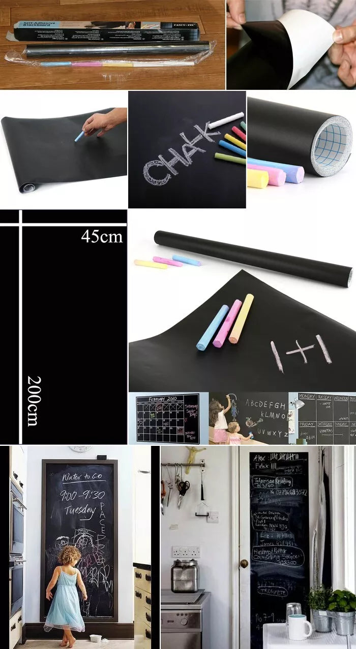 lengvai užklijuojama ant bet kurio lygaus paviršiaus — ne tik sienos, bet ir durų, sienos, šaldytuvo, spintos, taip pat ant stalo;prireikus ji taip pat lengvai ir nuklijuojama nuo paviršiaus — jokių pėdsakų neliks;piešti ar rašyti galima įprastais kreidos pieštukais, o viską paprasčiausiai nuvalysite drėgna kempinėle;spalva — juoda;matmenys: 45 x 200 cmBeje, Jums priklausys ir DOVANA — spalvotų kreidos pieštukų rinkinys, tad vos tik lipdukas atsidurs ant sienos ar kitos Jūsų parinktos vietos, nekantraujantys mažieji dailininkai galės nieko nebelaukdami kibti į „darbą"!