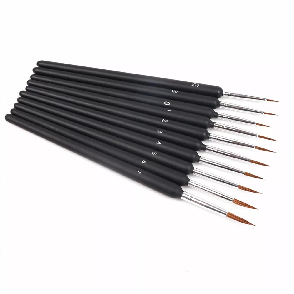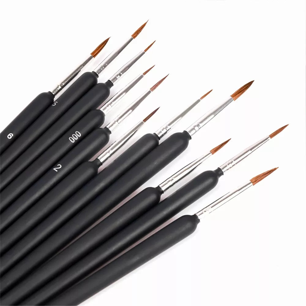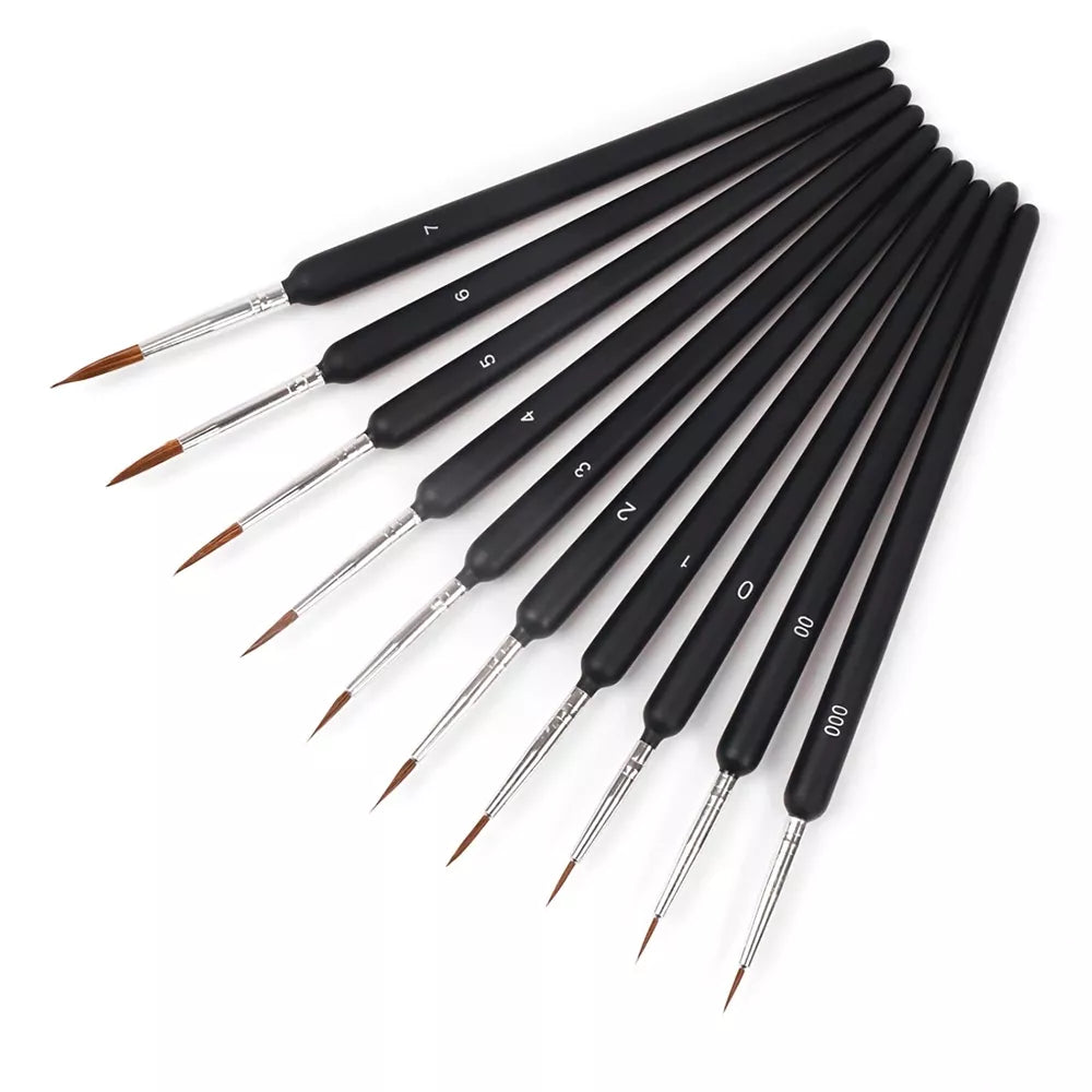 9 dalių teptukų rinkinys. Puikus šepetėlių rinkinys meninei tapybai.