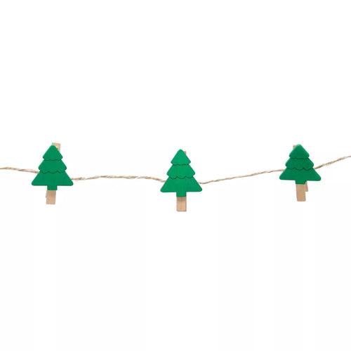Kalėdinė LED girlianda su mediniais segtukais „Eglutės“, 10 LED, 2,2 m