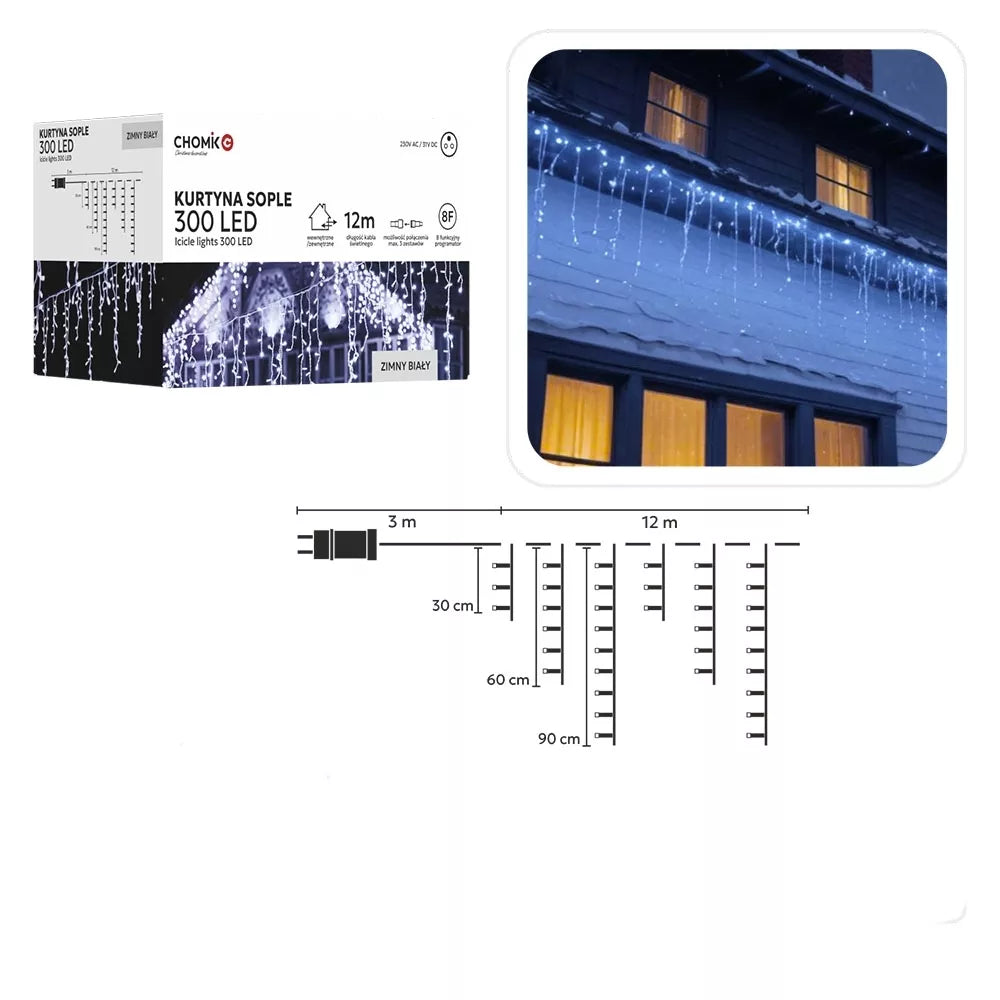 Kalėdinė LED užuolaida „Sopelai“ CHOMIK, 300 LED, šaltai balta šviesa, 12 m