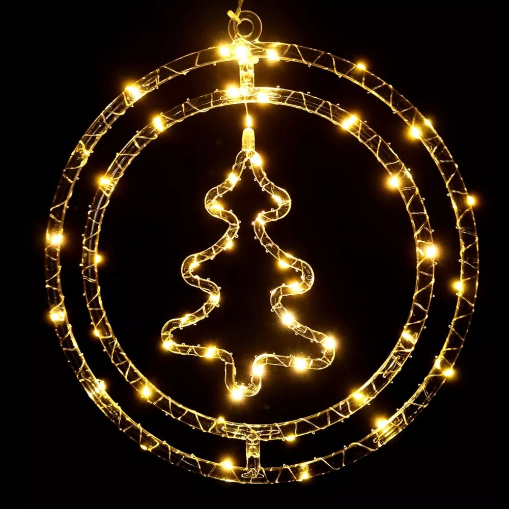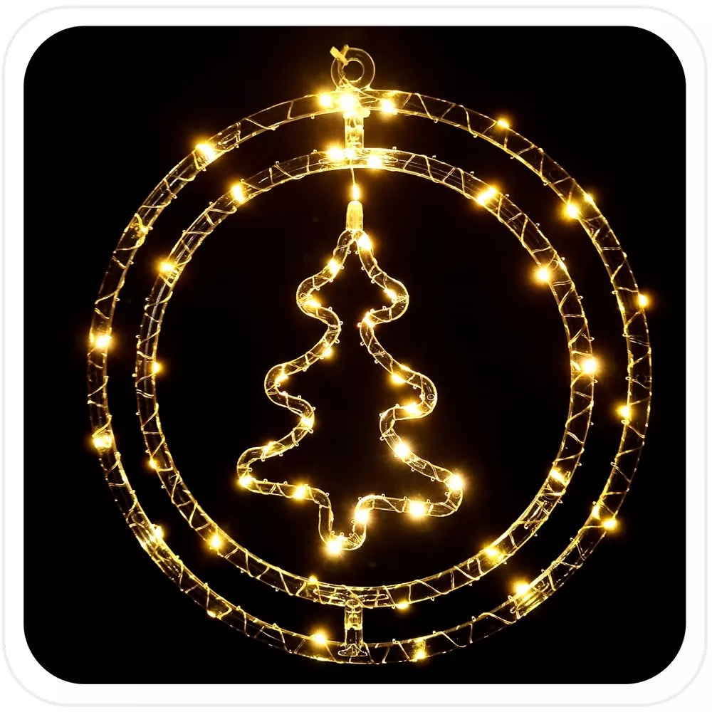 Kalėdinė šviečianti dekoracija – eglutė ratelyje, 48 LED, šiltai balta, baterijomis maitinama