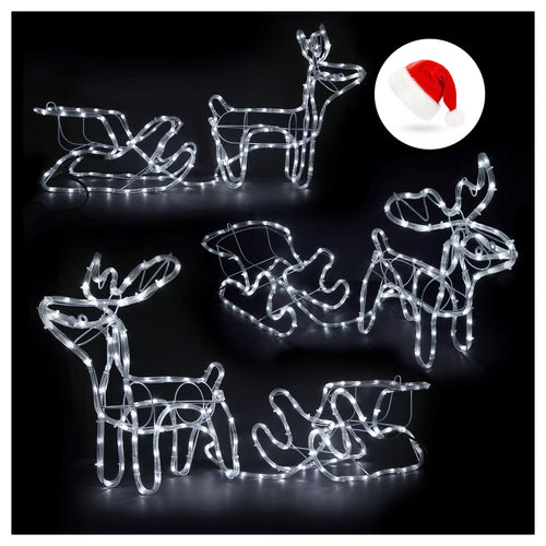 LED šviečianti elnių ir rogių dekoracija – 120 cm, šaltai balta šviesa