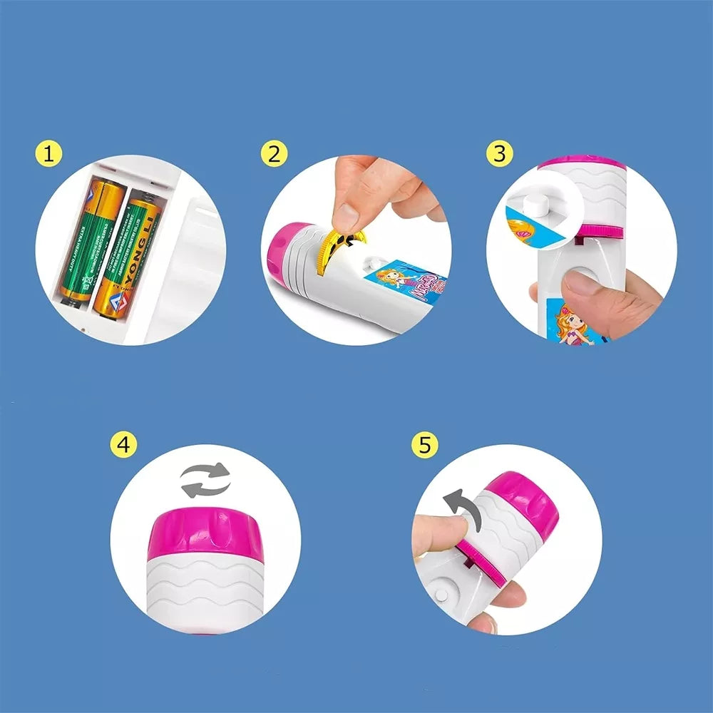 Projektoriaus ir žibintuvėlio šviesa, rodanti stebuklingas pasakas, sužavės Jūsų vaiką !