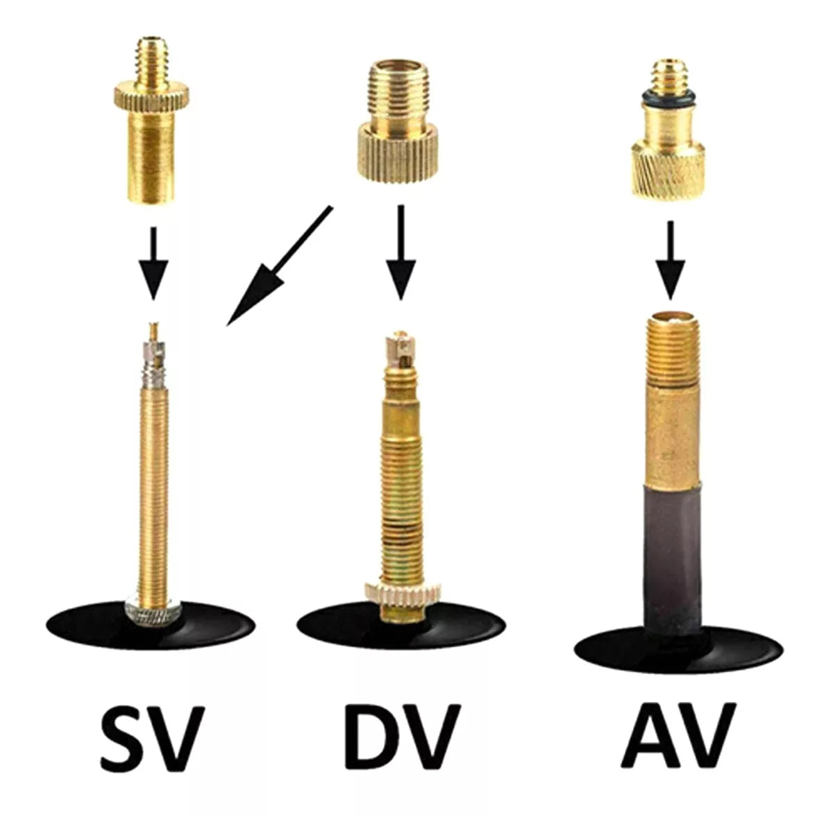 - Adapteriai DV / SV, AV, SV vožtuvams