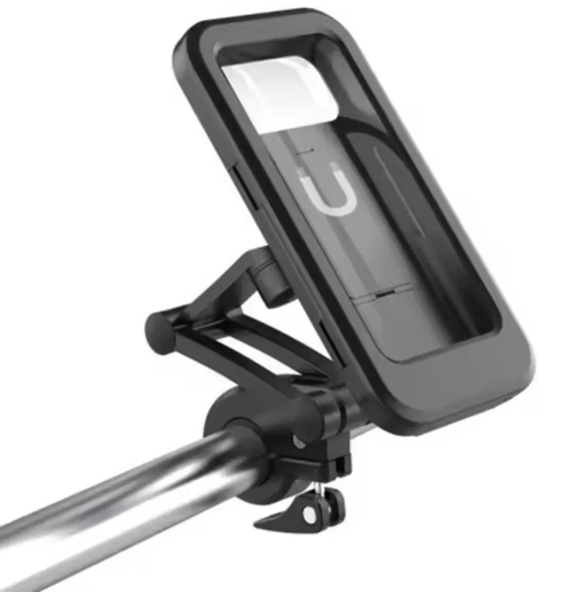 Universalus, vandeniui atsparus dviračio telefono laikiklis. Pagaminta iš aukštos kokybės plastiko, atsparaus drėgmei ir sudėtingoms oro sąlygoms. Galimybė keisti rankenos plotį, suktis aplink savo ašį 360 laipsnių plokštumoje ir reguliuoti pasvirimą pagal vartotojo poreikius. Tinka visiems išmaniesiems telefonams, kurių ekrano dydis yra nuo 4,5 iki 6,7 colių. Dangtis priekyje veikia su jutikliniais ekranais, todėl lengviau naudotis išmaniuoju telefonu lyjant. Lengvas tvirtinimas ant dviračio vairo naudojant spaustuką.