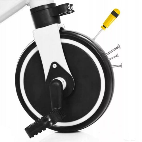 - Galimybė sulankstyti galinius ratus ir sulankstyti bei išskleisti pedalus leidžia lengvai paversti dviratį važiuojamu.