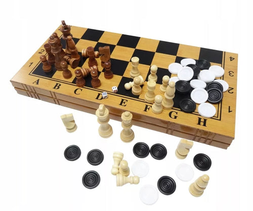 Rinkinys, skirtas žaisti šachmatais, šaškėmis ir nardais. Žaisk su šeima ir draugais tradicinius žaidimus! Medinėje dežutėje yra net 3 žaidimai!