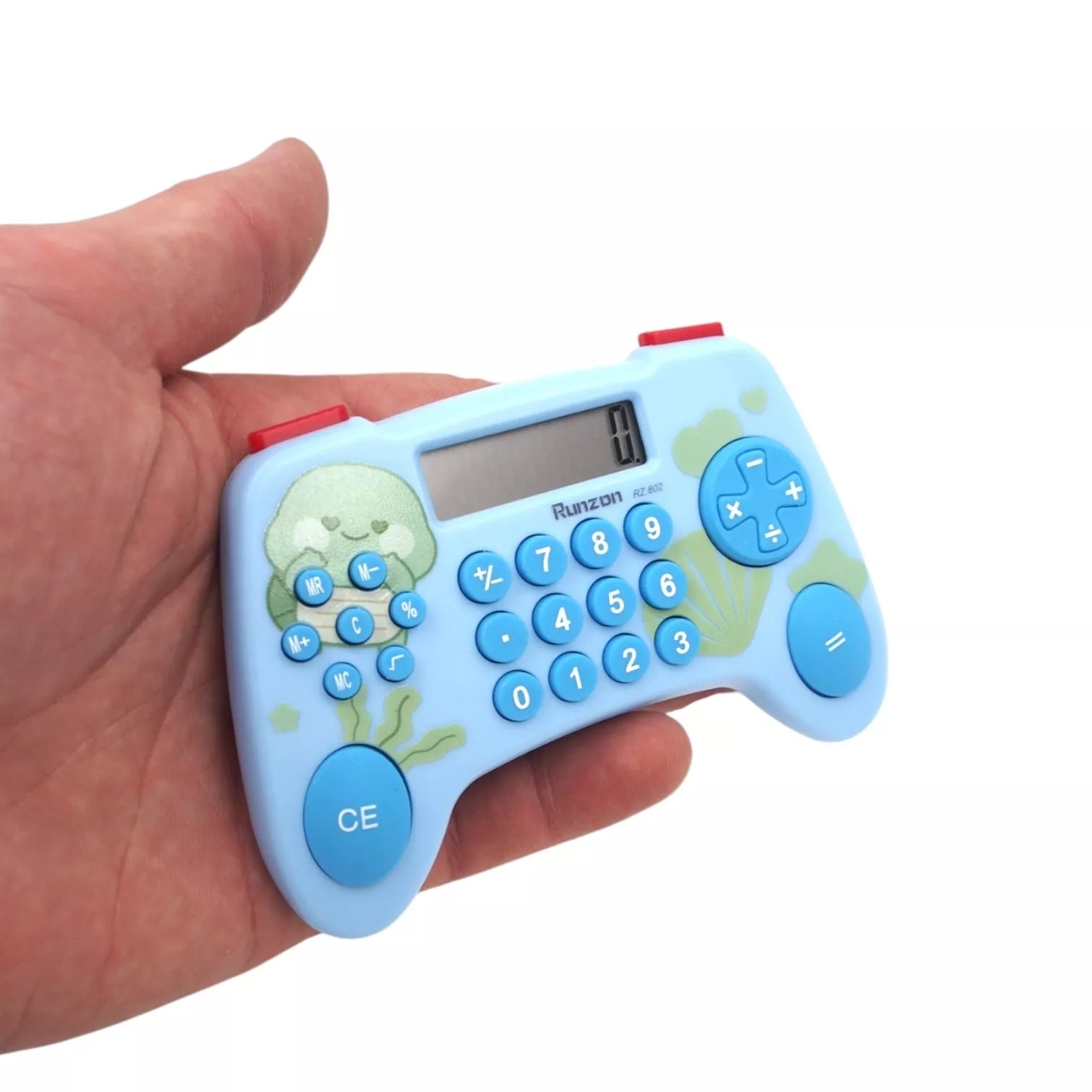 Linksmas ir žaismingas skaičiuotuvas, suformuotas kaip žaidimų pultelis – tai puiki dovana vaikams ar paaugliams! Jis ne tik padeda atlikti pagrindinius aritmetinius veiksmus (sudėtis, atimtis, daugyba, dalyba), bet ir įkvepia mokytis skaičiuoti smagiai ir kūrybingai.