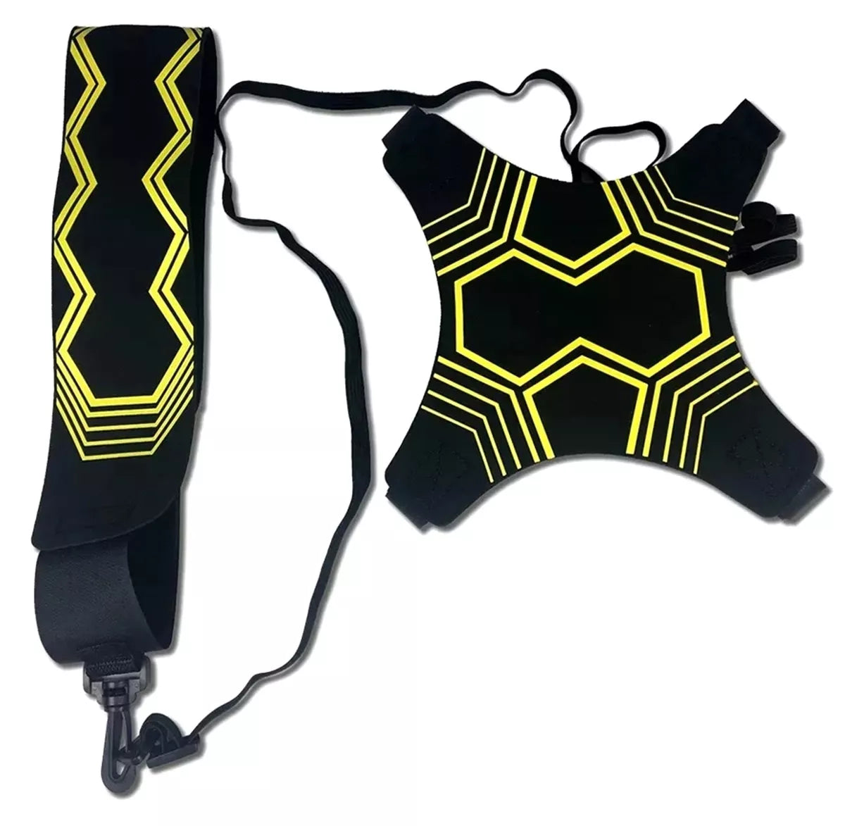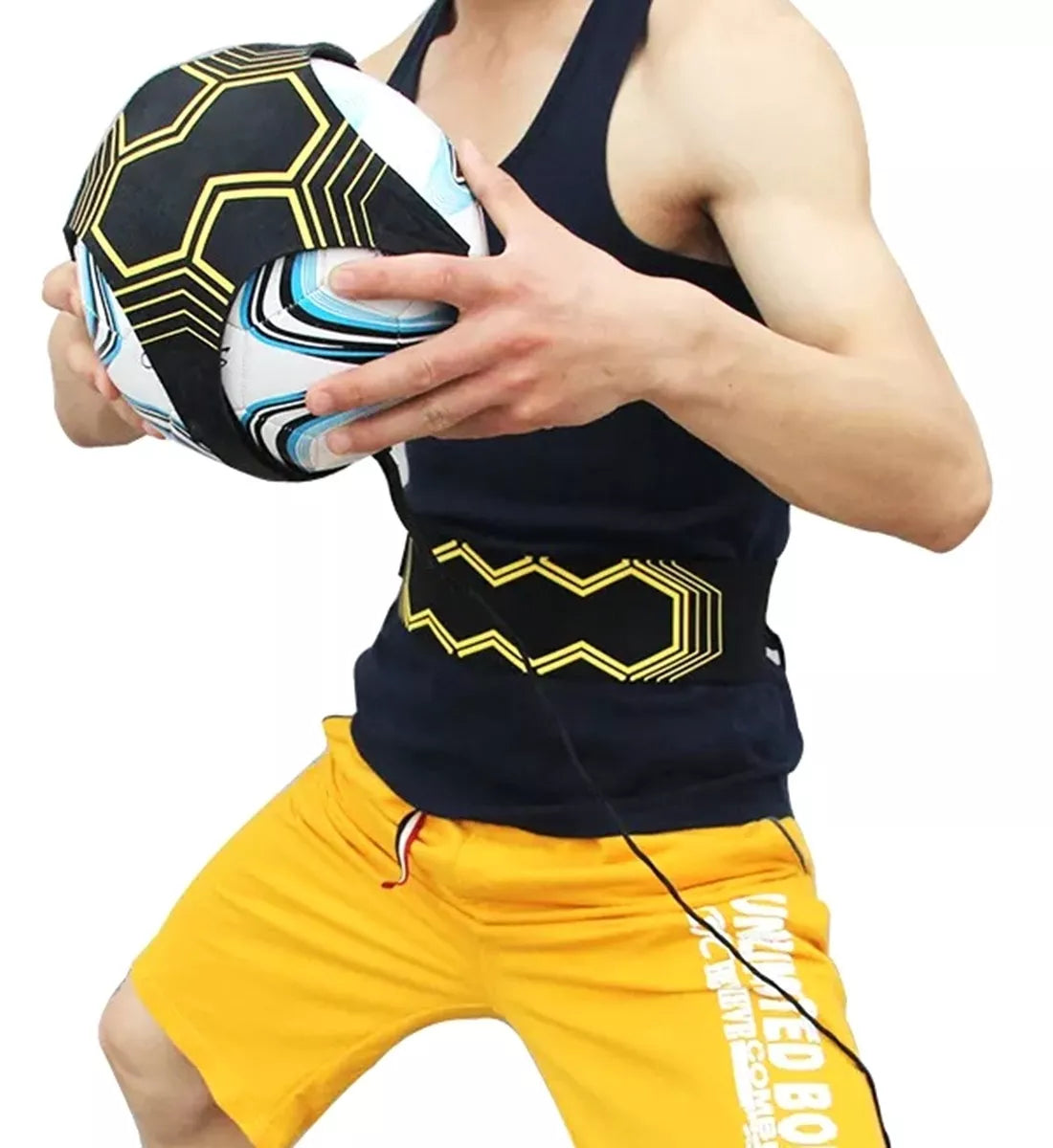 Klubų diržas treniruotėms su kamuoliu. Nuostabiai lavina techninius įgūdžius. Palengvina kamuolio valdymo praktiką, o tai svarbu žaidžiant futbolą. Diržas leidžia lavinti tokius įgūdžius kaip perdavimas, metimas ir kamuolio valdymas. Lankstus dizainas – tinka įvairaus dydžio kamuoliukams (3/4/5). Diržas turi patogią Velcro užsegimą, todėl jį lengva priderinti prie bet kokios figūros. Puikus laisvalaikio praleidimo būdas.