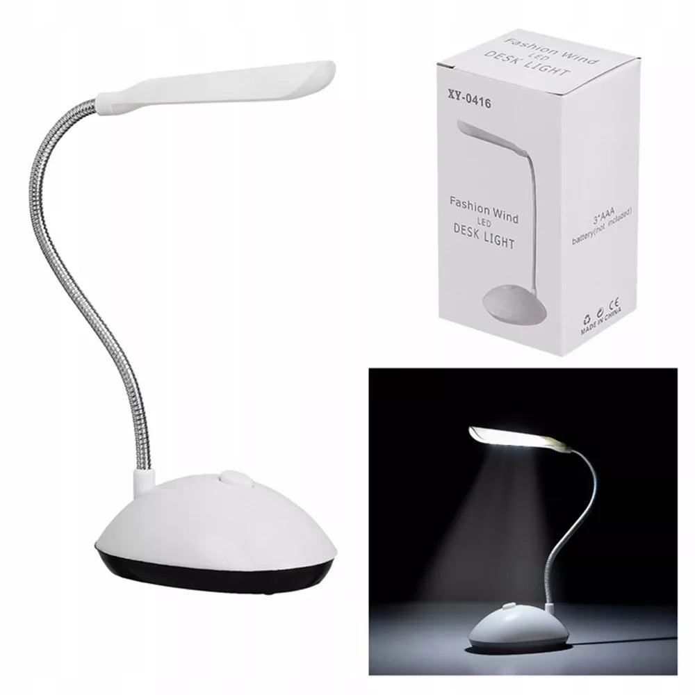 Mini LED stalinis šviestuvas XY-0416, kuris idealiai tinka darbui, pvz. nešiojamuoju kompiuteriu ar knygų skaitymui lovoje.Šviesos diodai naudojimo metu neįkaista, todėl lemputė yra saugi vaikui.Lankstus stovas.Įjungimo/išjungimo jungiklis.Galima naudoti kaip naktine lempute. Šviestuvas maitinamas 3x AAA baterijomis (elementai nepridedami).
