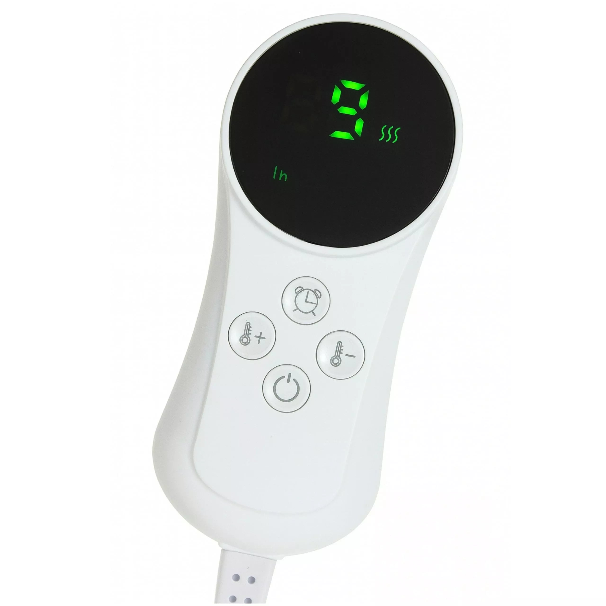 Medžiaga: poliesterio audinys + ABS plastikasMaitinimo šaltinis: 230 V (iš elektros tinklo)Nuotolinio valdymo pultas ant laidoTemperatūra (5): reguliuojama iki 5 lygiųAutomatinis išsijungimas po vienos valandos veikimoIlgis: 26 cmPlotis: 26 cmAukštis: 22 cmSpalva: pilka ir baltaPakuotė: kartonas