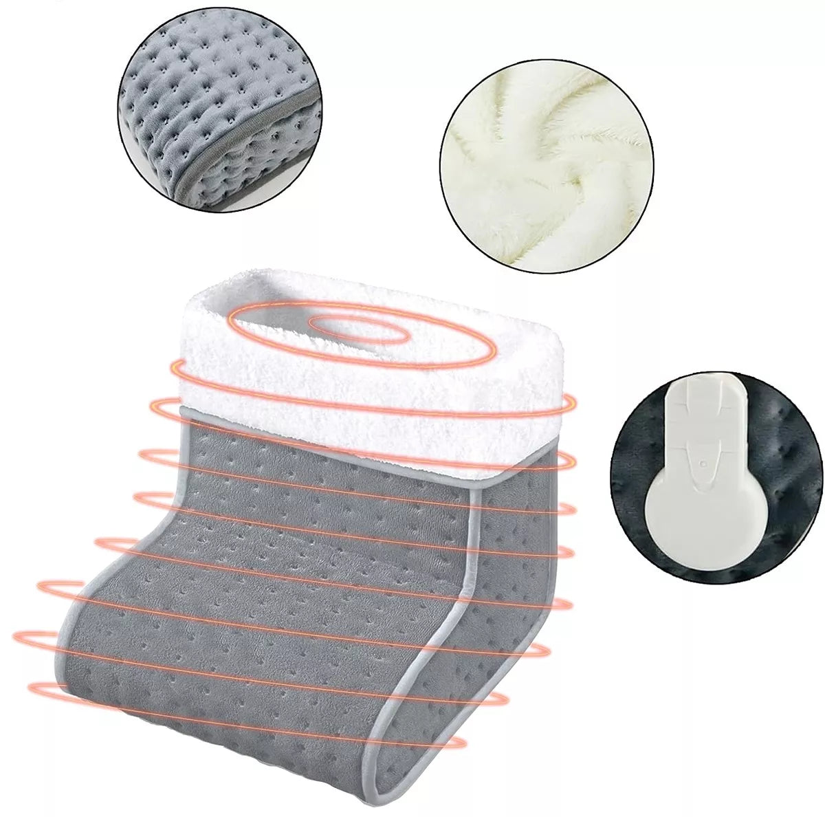 Elektrinis bato formos pėdų šildytuvas. Kilimėlis pagamintas iš storos, šiltos medžiagos, kuri patogiai apgaubia abi pėdas. Kišenė labai minkšta ir maloni liesti, aptraukta šiltu kailiu. Universalus atidarymo dydis leidžia pritaikyti pėdas nepriklausomai nuo dydžio. Pagalvėlė greitai įkaista ir taip pat greitai išskiria šilumą. Šildymo galią galima reguliuoti iki 5 lygių naudojant maitinimo laido nuotolinio valdymo pultą. Jis taip pat turi automatinio išsijungimo funkciją po valandos nepertraukiamo naudojimo. Prietaisas maitinamas elektra, todėl jo nereikia nuolat krauti.