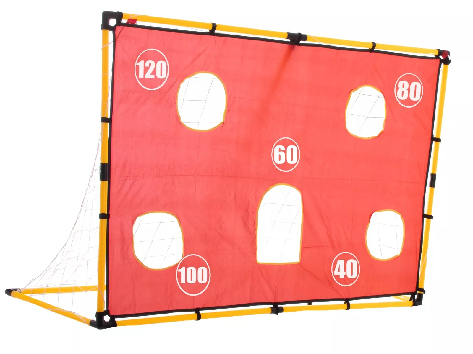 Į komplektą įeina futbolo vartai su treniruočių kilimėliu su šešiomis skirtingo taškų skylutėmis, skatinančiomis praktikuoti tikslius smūgius. Rinkinyje taip pat yra kamuolys, pompa ir kaiščiai vartams stabilizuoti. Žaislas lavina motorinę koordinaciją ir moko sveikai konkuruoti, suteikdamas daug sportinio azarto!