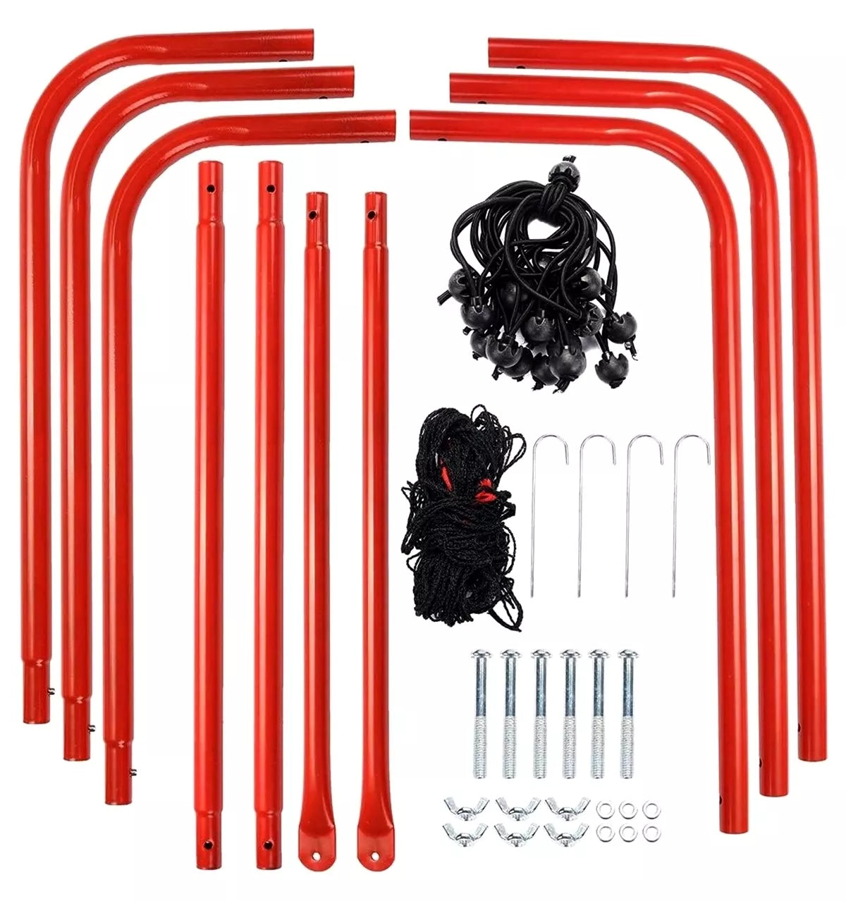 Treniruočių rinkinį lengva surinkti ir išardyti. Jį galima visam laikui pastatyti ant vejos naudojant pridedamus kaiščius. Specifikacijos:
