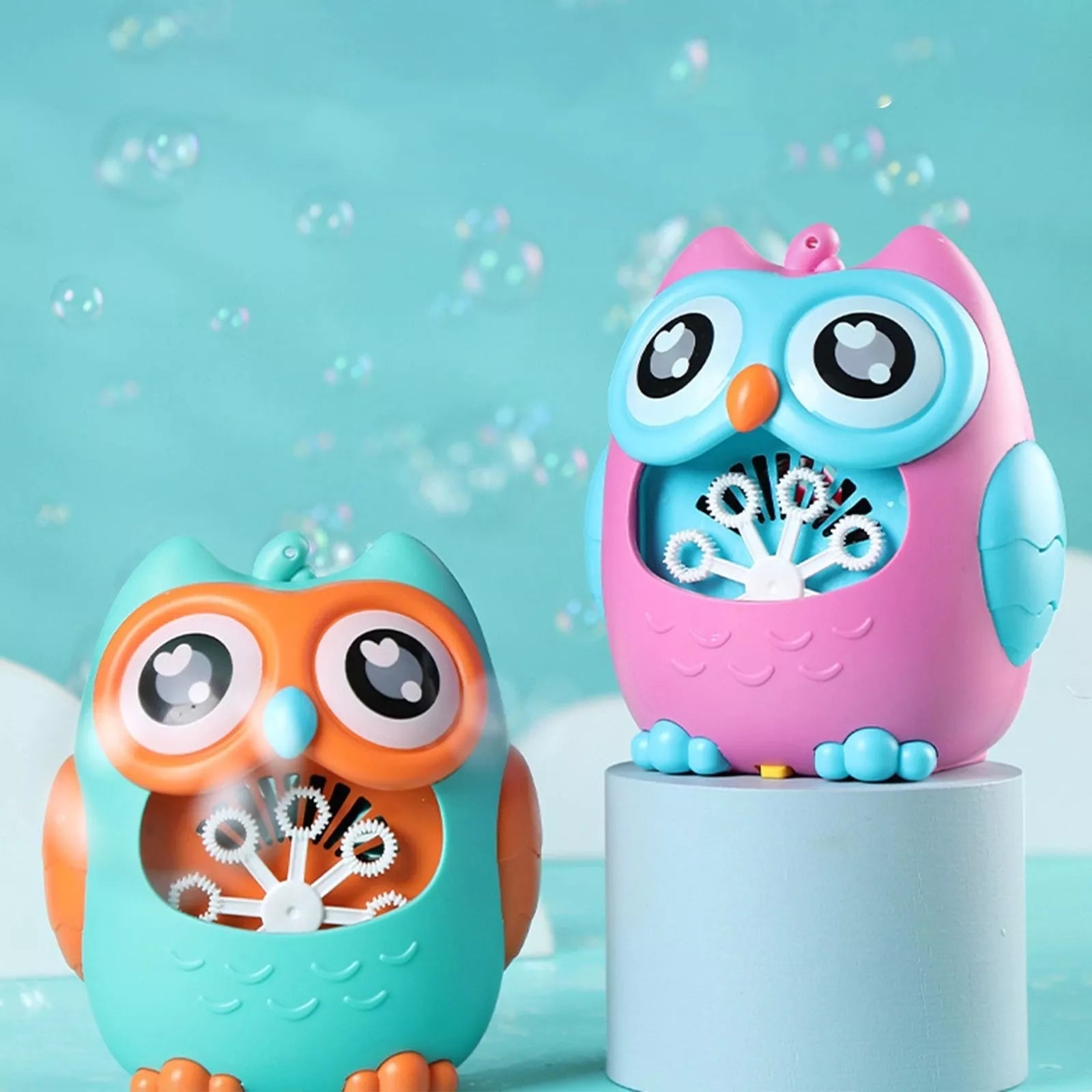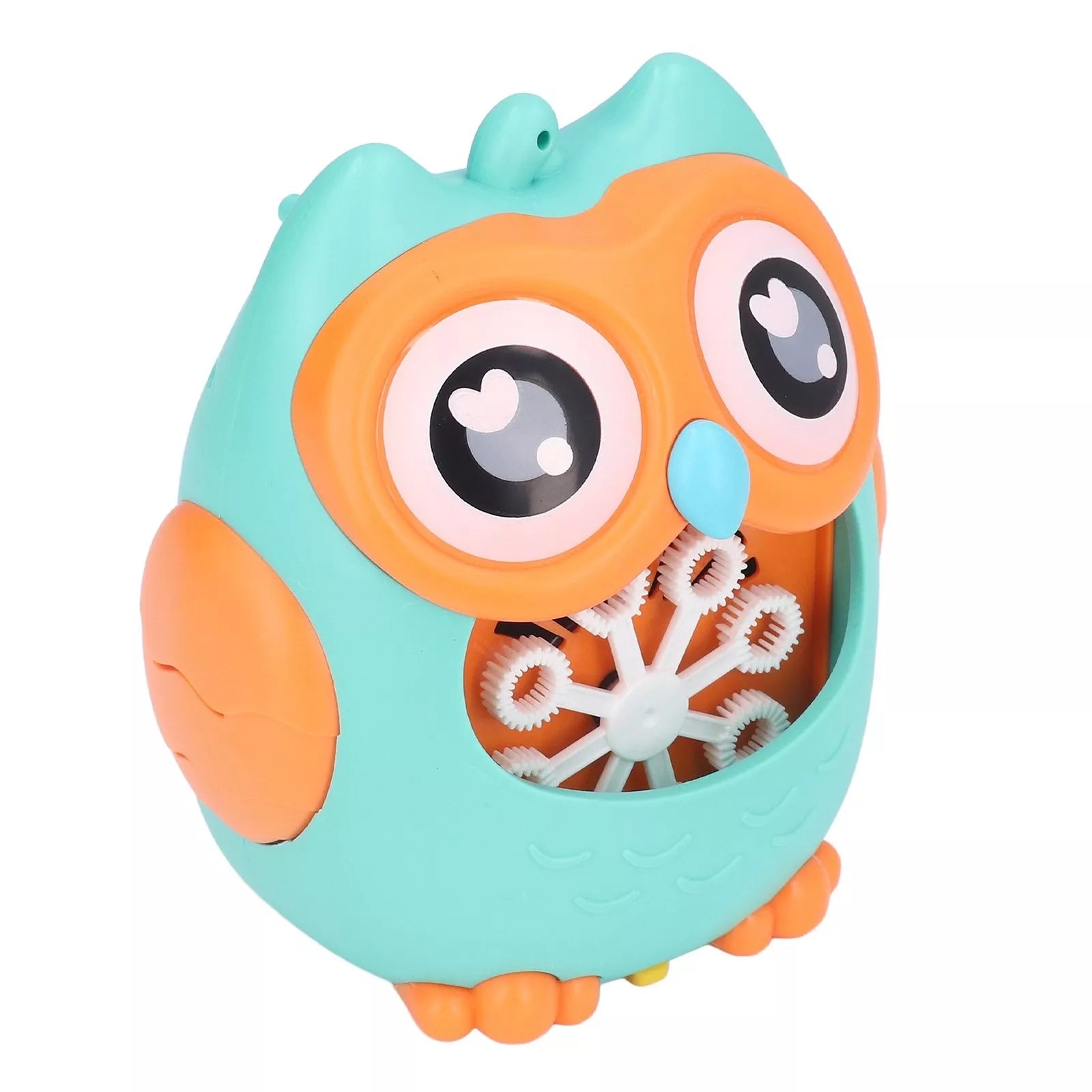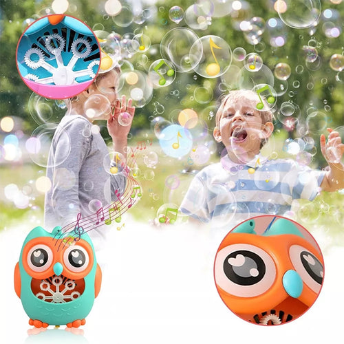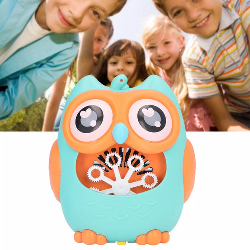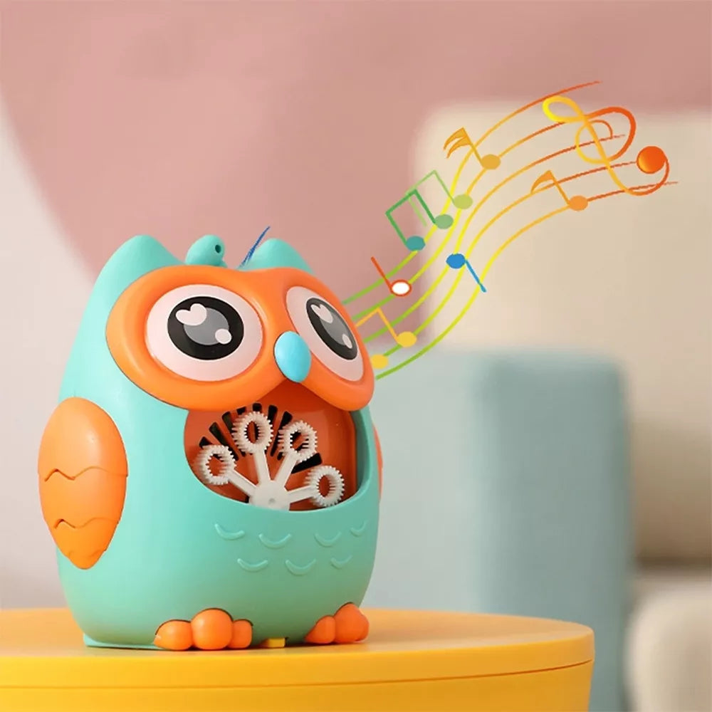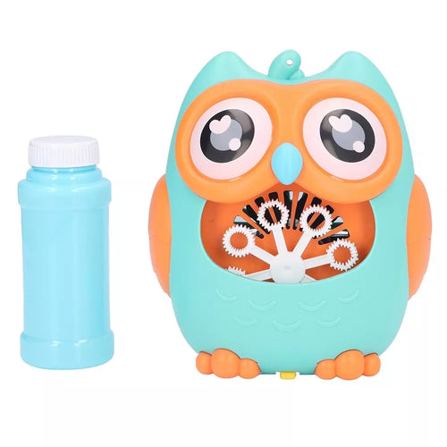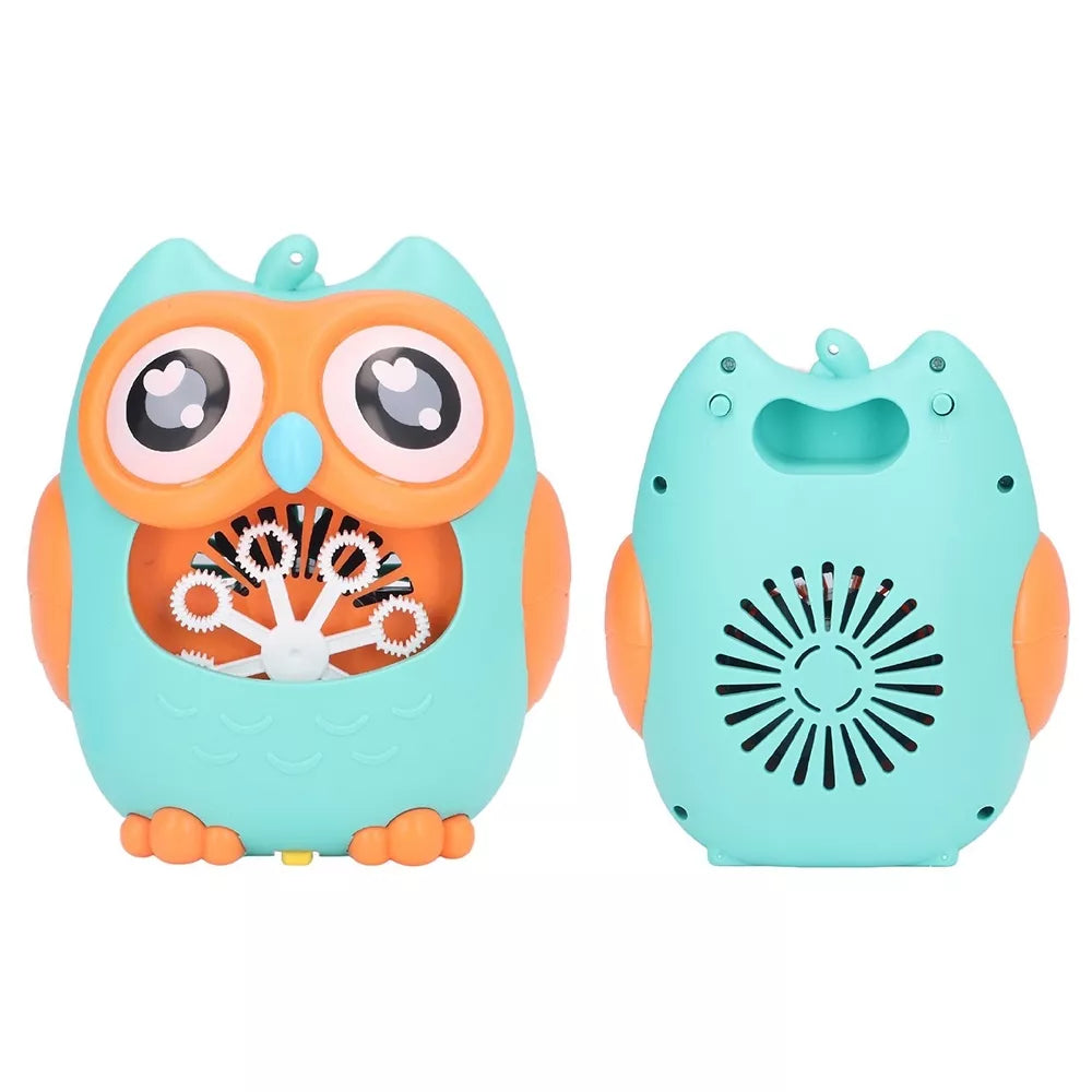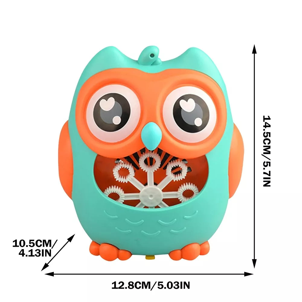 Muilo burbulų generatorius laimingo pelėdžiuko pavidalu. Įpylus specialaus skysčio ar muiluoto vandens, jis sukuria didelius burbuliukų kiekius ir juos pučia ventiliatoriumi.