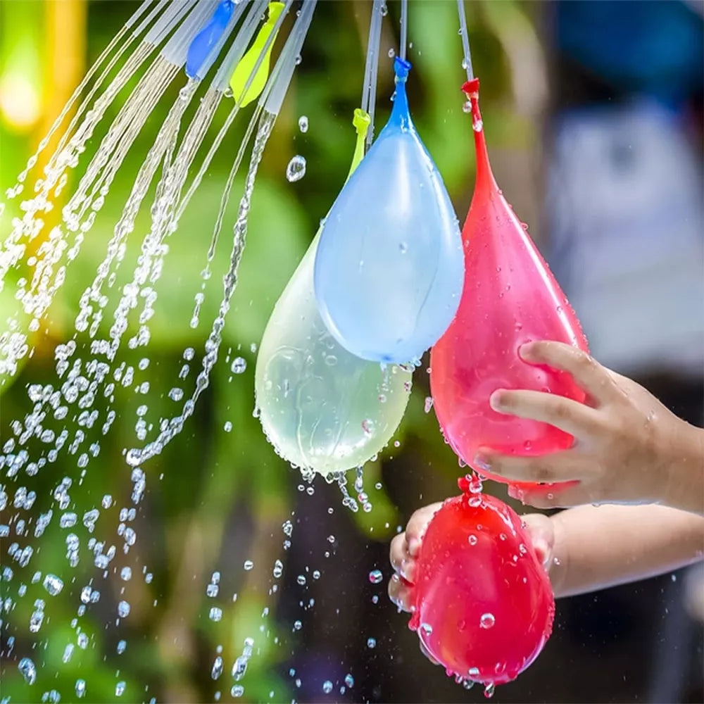 Atėjus vasarai smagu pažaisti vandens karą! O dar smagiau, kai nereikia kiekvieno baliono pripilti atskirai. Su šiuo ryšuliu galėsite pripilti 37 balionus vandens vienu metu ir mėgautis vandens karu karštą vasaros dieną. Balionai pagaminti iš tvirtos medžiagos, todėl pildant juos vandeniu jie nesuplyš.