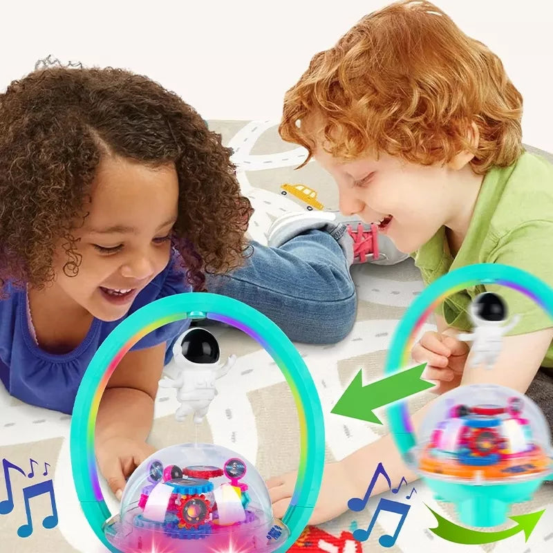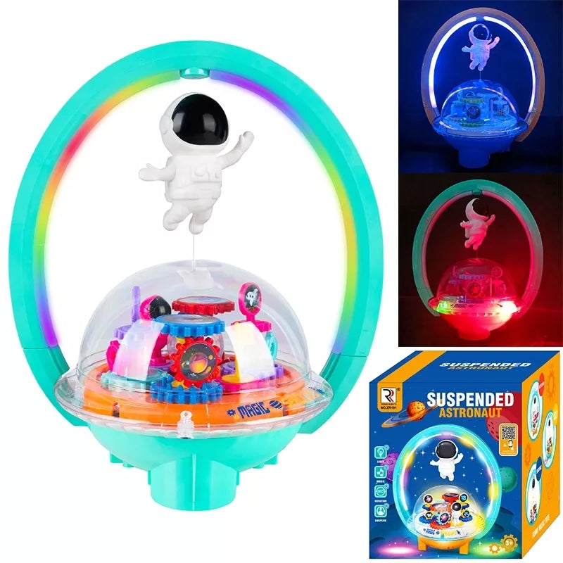 Spalvingas levituojantis astronautas su linksma melodija ir LED foniniu apšvietimu.