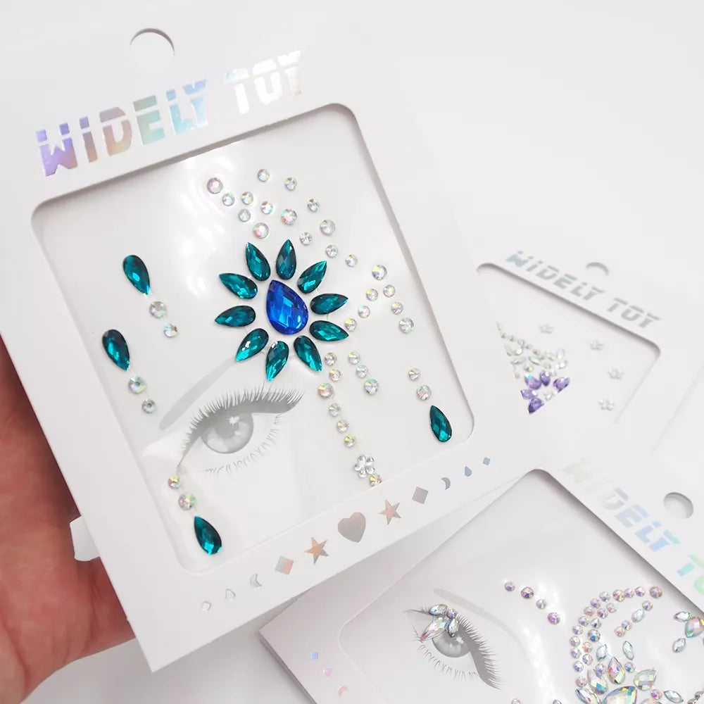 Papuošalai veidui yra lipnūs, todėl veido kristalus lengva prilipti, tiesiog nulupkite nuo pagrindinio popieriaus ir priklijuokite pagal dizainą. Lipdukai atsparūs prakaitui ir vandeniui. Brangakmeniai yra skirti iki 8 valandų nešiojimo. Galima pakartotinai naudoti su blakstienų ar kūno klijais. Taip pat galite naudoti blakstienų klijus, kad padidintumėte lipnumą ir išvengtumėte nukritimo.