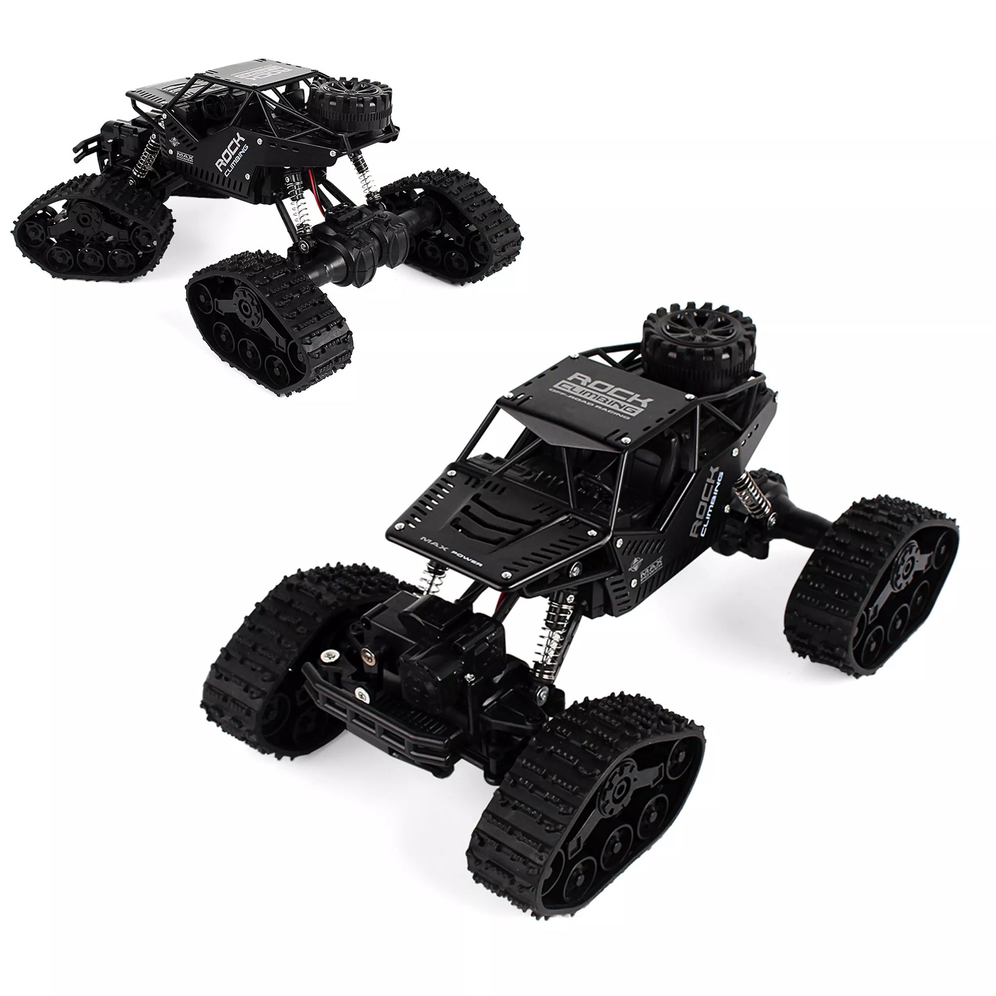 Dviejų tipų važiuoklė: rinkinyje yra tiek ratų komplektas, tiek vikšrai, tad automobilis lengvai pritaikomas skirtingiems paviršiams.