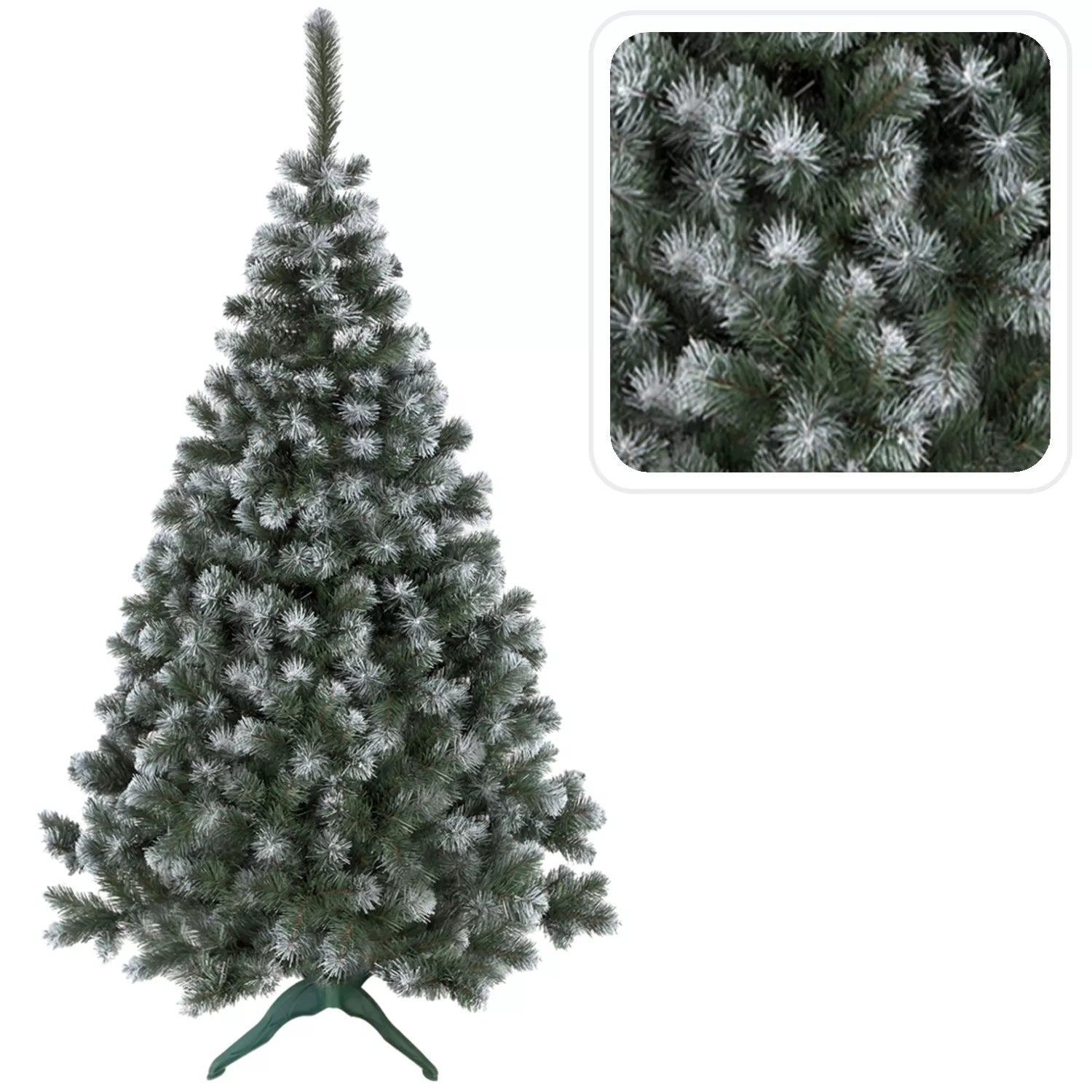 Ši aukštos kokybės eglutė išsiskiria puikiai proporcinga, simetriška forma ir sodriai žaliomis šakomis su baltu sniego efektu, primenančiu kalnuose augančias tikras egles.