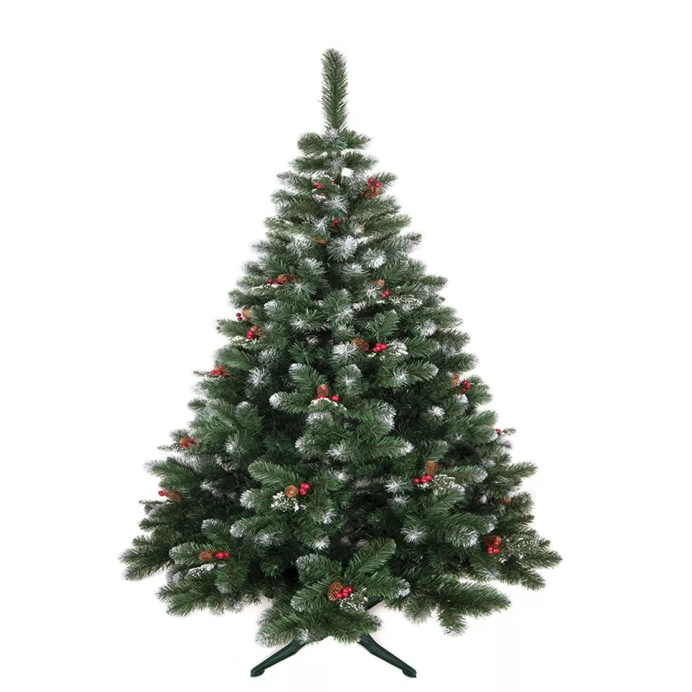 Perliniai akcentai ir švelnus baltas sniego efektas suteikia eglutei šventiško žavesio. Jos šakos dekoruotos mažais kankorėžiais ir raudonomis uogomis, kurios sukuria natūralų, harmoningą derinį.