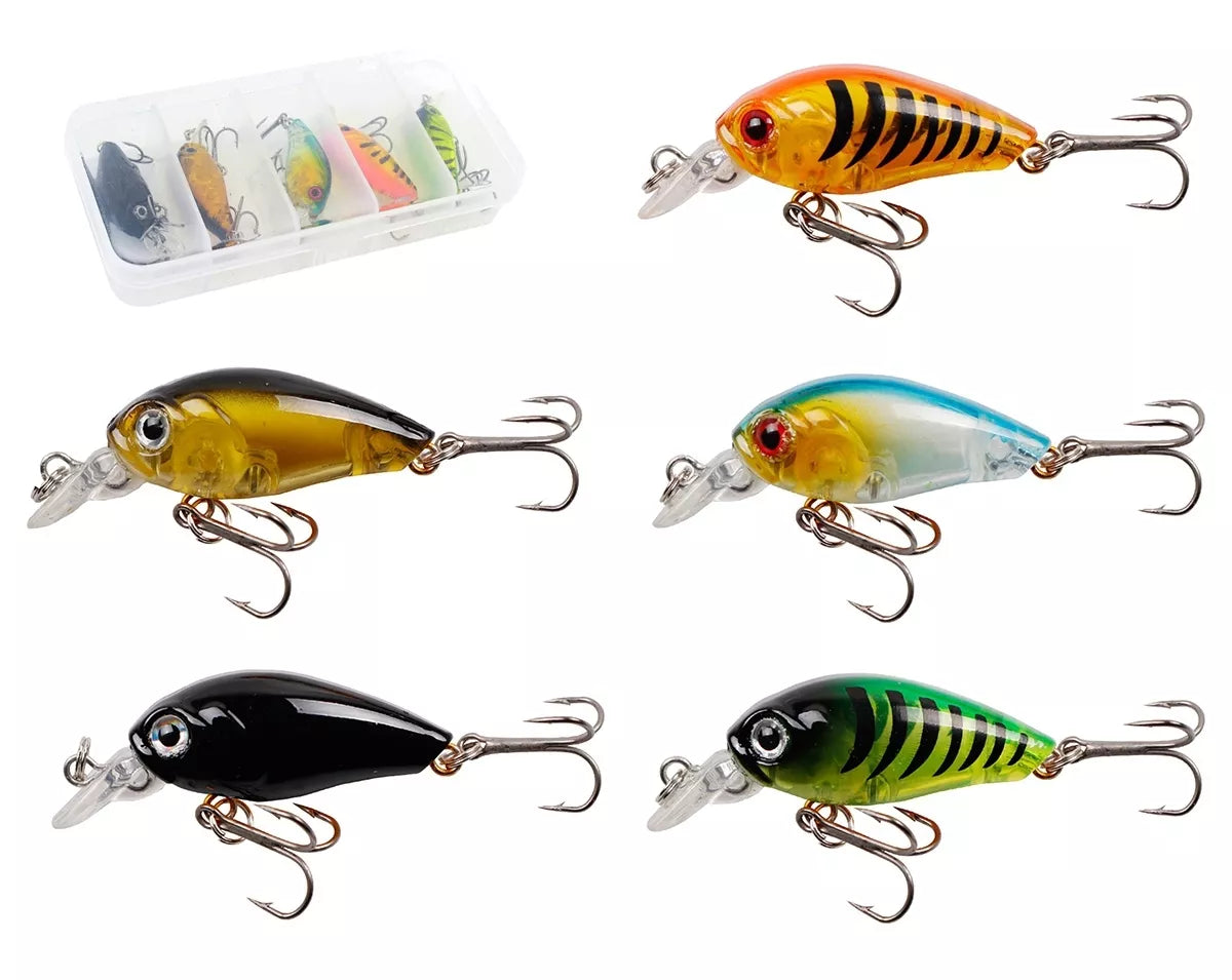 Puikus 5 masalų rinkinys plėšrioms žuvims! Kiekvienas iš voblerių – tai masalas, pritaikytas skirtingos žuvies skoniui, ryškių spalvų su žvynų imitacija ir specialiais barškučiais, padedančiais pritraukti plėšrūnus! Visa tai supakuota į tvirtą dėžutę, todėl rinkinį patogu nešiotis.