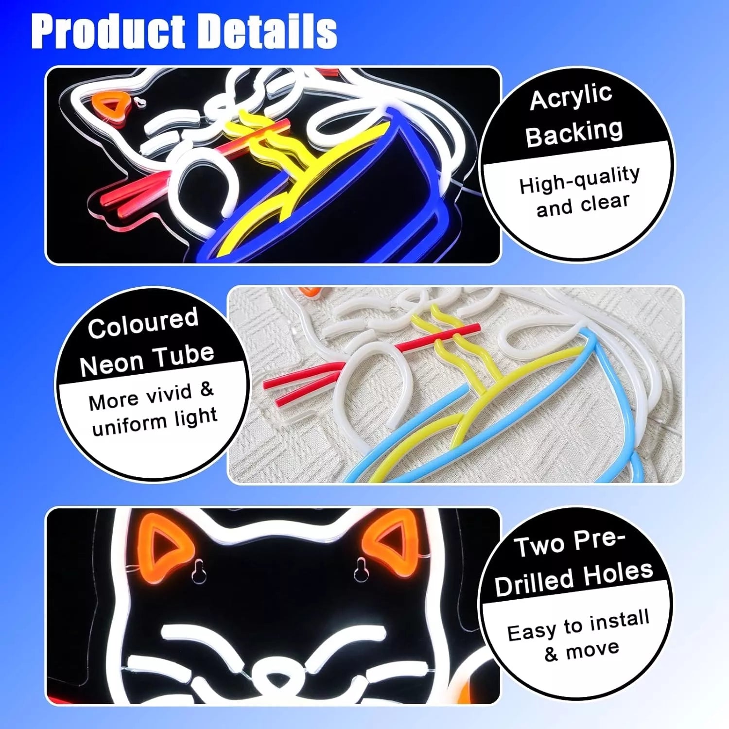 Prietaisas puikiai imituoja neoninio vamzdžio išvaizdą. Skirta kabinti ant sienos (viršutinėje šviestuvo dalyje dvi skylės). Lempa naudoja ryškų LED foninį apšvietimą su intensyvia spalva. Viskas, ko jums reikia norint jį maitinti, yra standartinis USB prievadas arba įkroviklis. Įrengtas kabelinis nuotolinio valdymo pultas, leidžiantis reguliuoti šviesos intensyvumą 10 žingsnių.