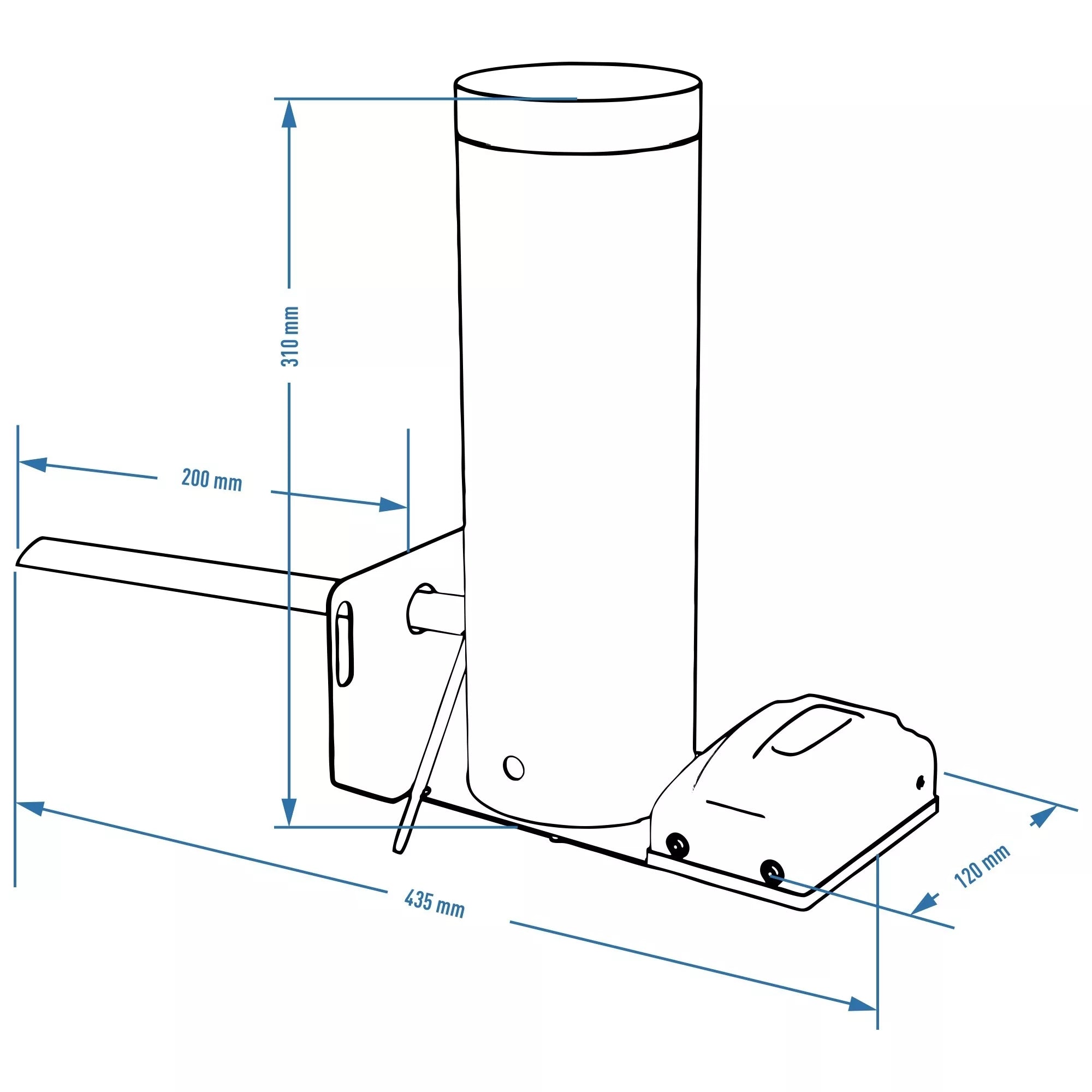 aukštis - 334 mm.plotis - 152 mm.ilgis - 435 mm.