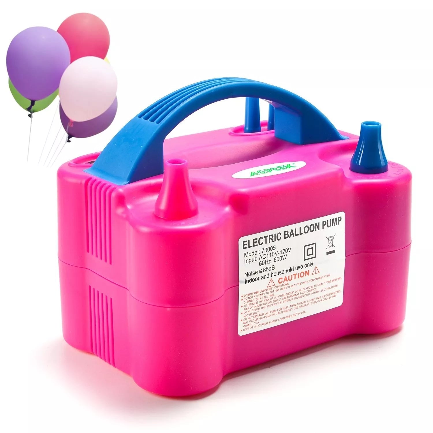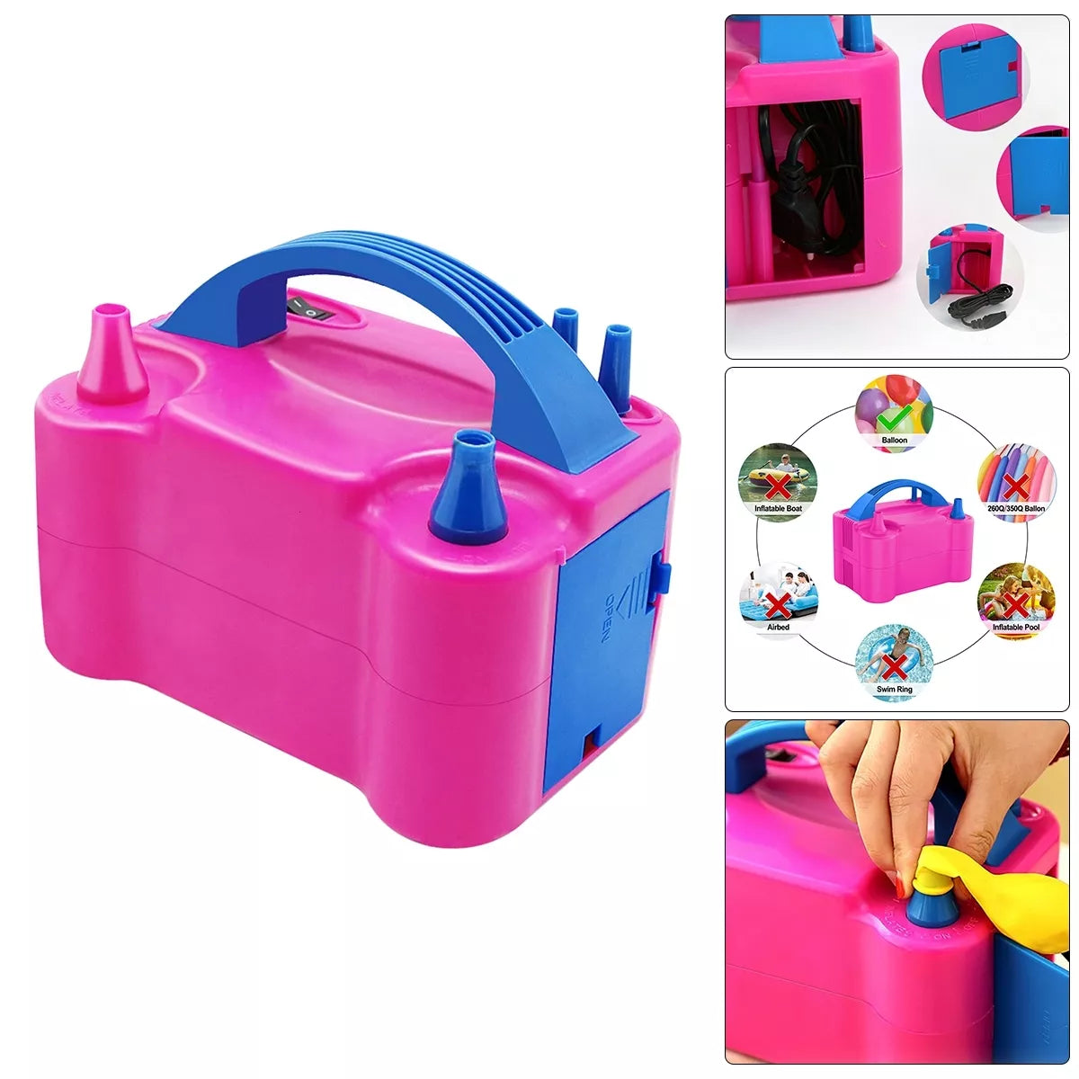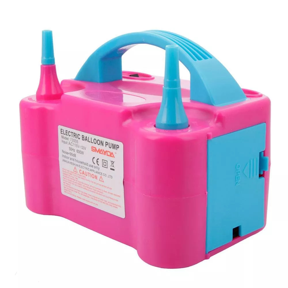 Pompa su dviem antgaliais, todėl vienu metu leidžia pūsti didesnį kiekį balionų.
