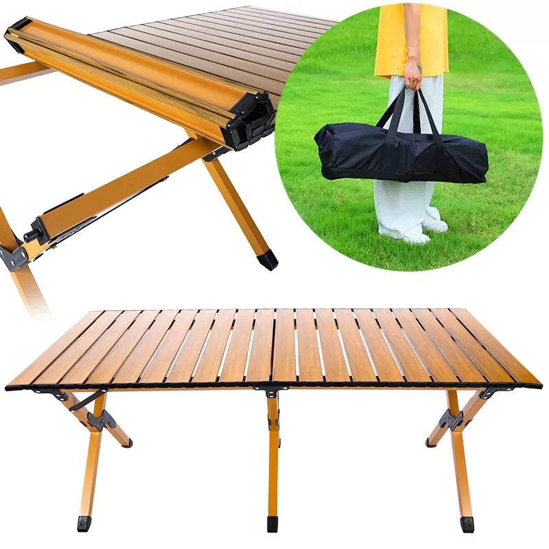Iškylų stalas su lengvai prižiūrimu laipteliu. Surinkimas labai paprastas, tereikia išskleisti kojas ir išskleisti laiptelio viršų. Stalas pagamintas iš patvaraus milteliniu būdu dažyto plieno. Visą daiktą galima nešiotis patogiame krepšyje (pridedama).