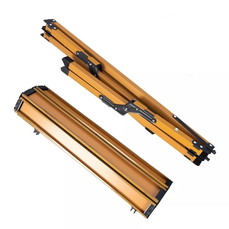 Iškylų stalas su lengvai prižiūrimu laipteliu. Surinkimas labai paprastas, tereikia išskleisti kojas ir išskleisti laiptelio viršų. Stalas pagamintas iš patvaraus milteliniu būdu dažyto plieno. Visą daiktą galima nešiotis patogiame krepšyje (pridedama).
