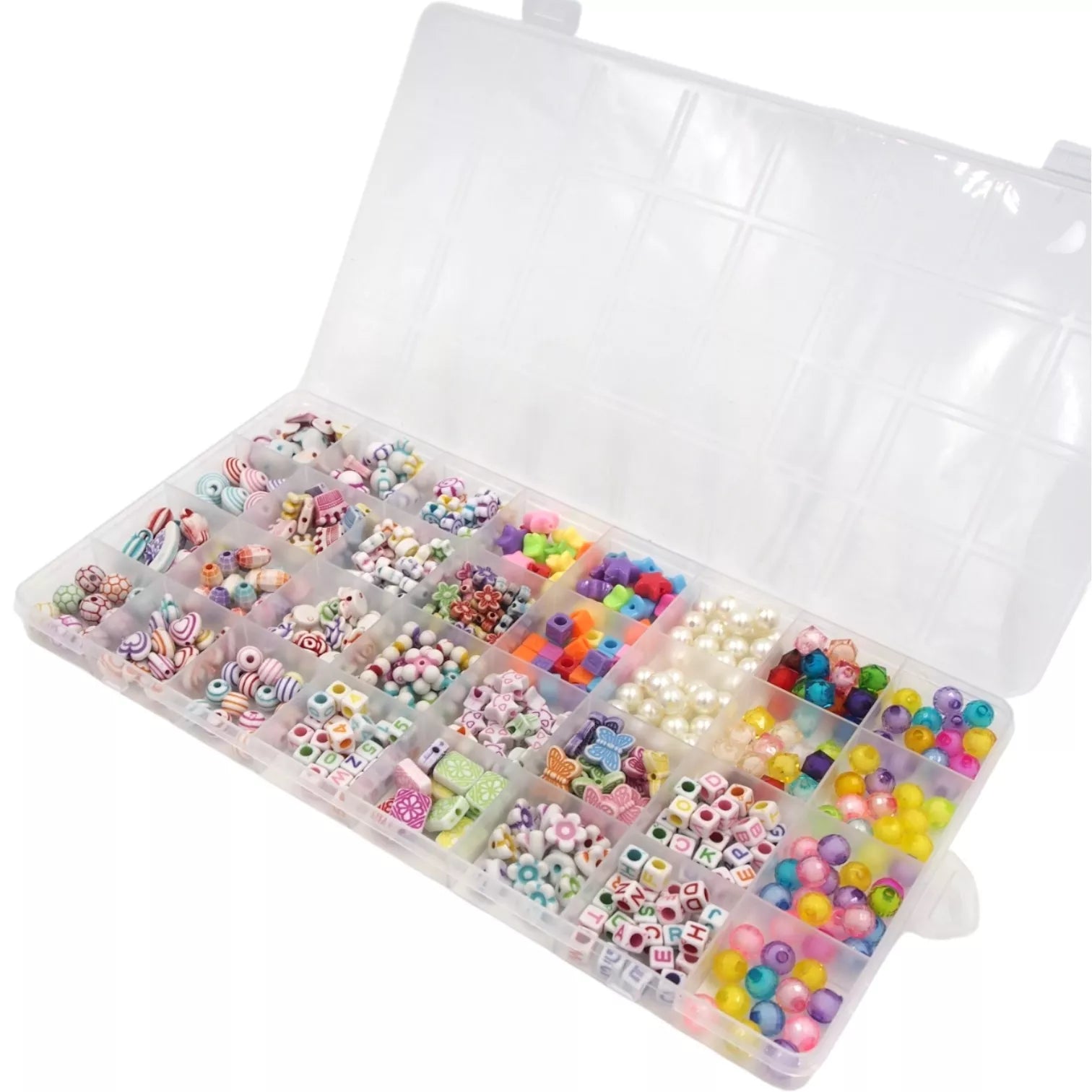 Karoliuku vėrimo rinkinys mergaitei, apyrankių vėrimo rinkinys – lavinkite vaikų kūrybiškumą leisdami jiems kurti ne tik įstabius bet ir praktiškus papuošalus iš karoliukų! Su šiuo papuošalų gamybos rinkiniu vaikams, jie galės pasidaryti išskirtines apyrankes, pakabukus ar gumeles plaukams, lengvai ir nesudėtingai. O rinkinyje esantys raidės, skaičiai, gėlės, drugeliai, širdys, žvaigždės ir daug kitų spalvingų karoliukų užtikrins kad kiekvienas karoliukų vėrimo kūrinys būtų unikalus ir atrodytų pasakiškai. Pirmiausiai rekomenduojame pradėti apyrankės gamybą ir karoliukų, raidžių suformuojant vaiko vardą, kuris apyrankei suteiks individualų charakterį. Rinkinys yra puiki dovana kiekvienam vaikui kuris suteiks ne tik begalę džiaugsmo bet ir užsiėmimo daugeliui valandų.