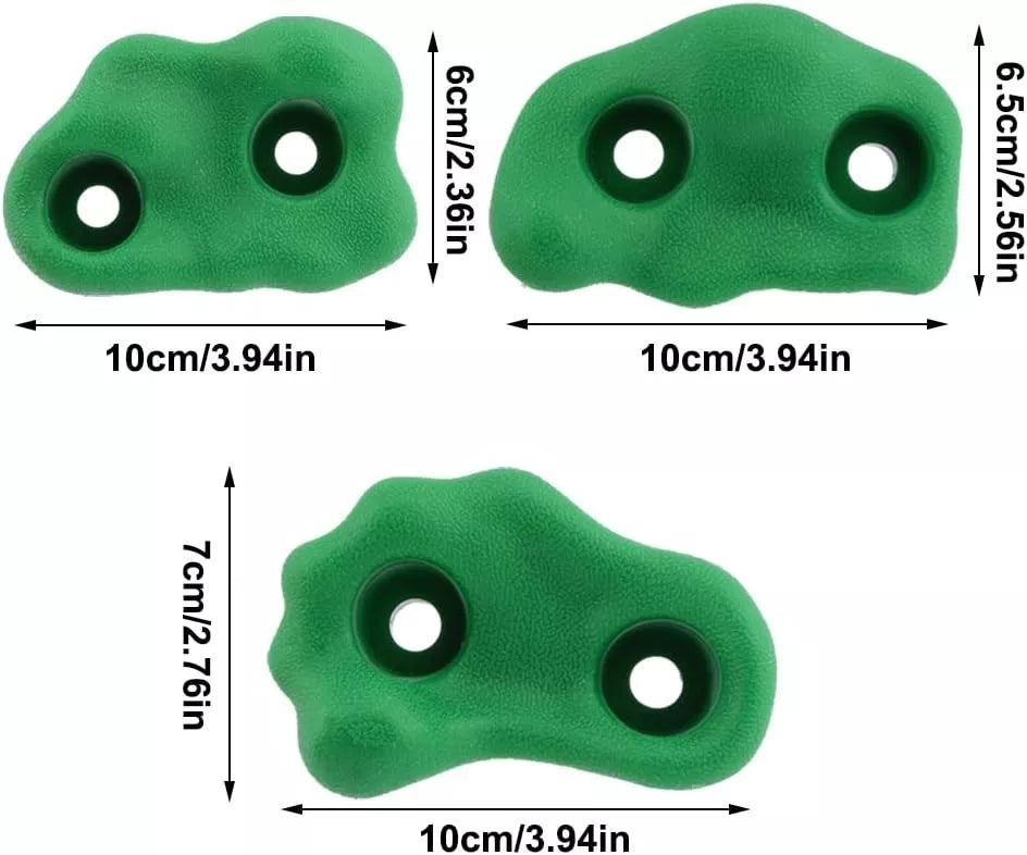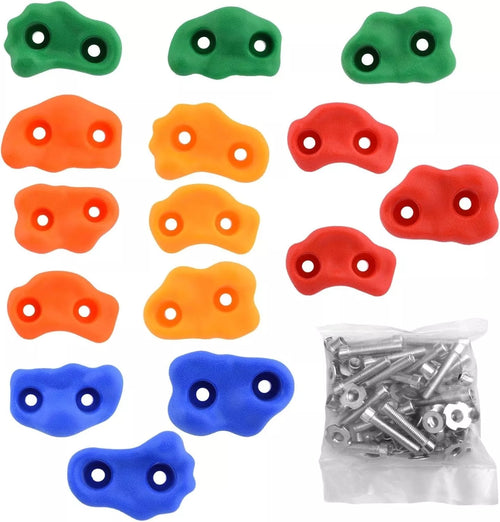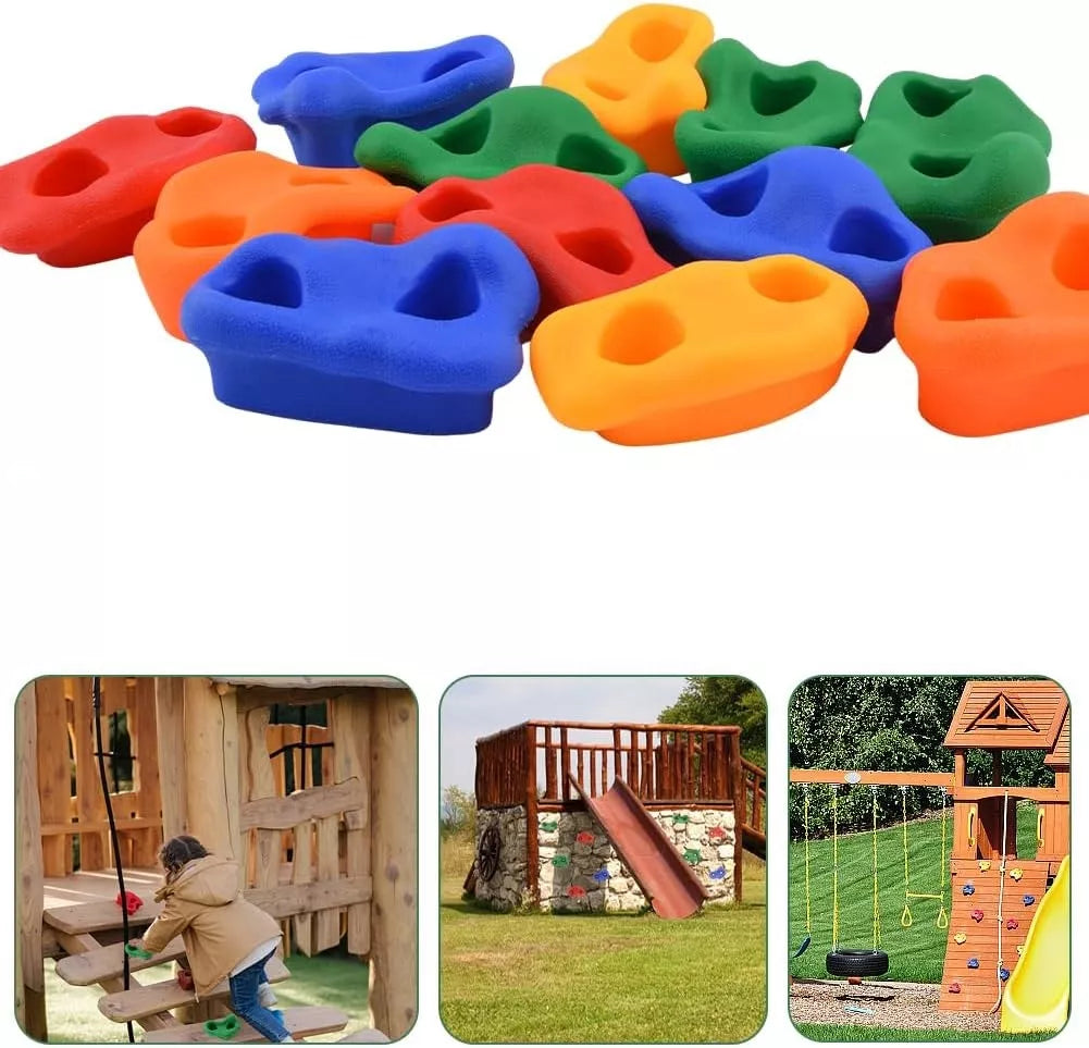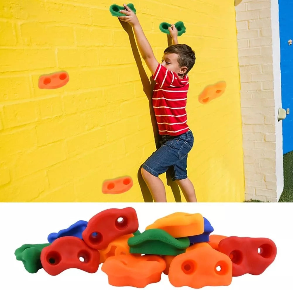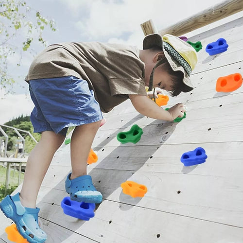 Sukurkite vaikams saugią ir smagią laipiojimo sienelę su šiuo spalvingų laipiojimo laikiklių rinkiniu! Rinkinyje rasite 10 ergonomiškų formų, skirtingų spalvų rankenų, pagamintų iš patvaraus, neslystančio plastiko. Pridedami visi reikalingi varžtai, tvirtinimo elementai ir šešiakampis raktas lengvam montavimui ant medinių ar kitų paviršių. Puikiai tinka vaikų kambariui, lauko žaidimų aikštelei ar darželiui.