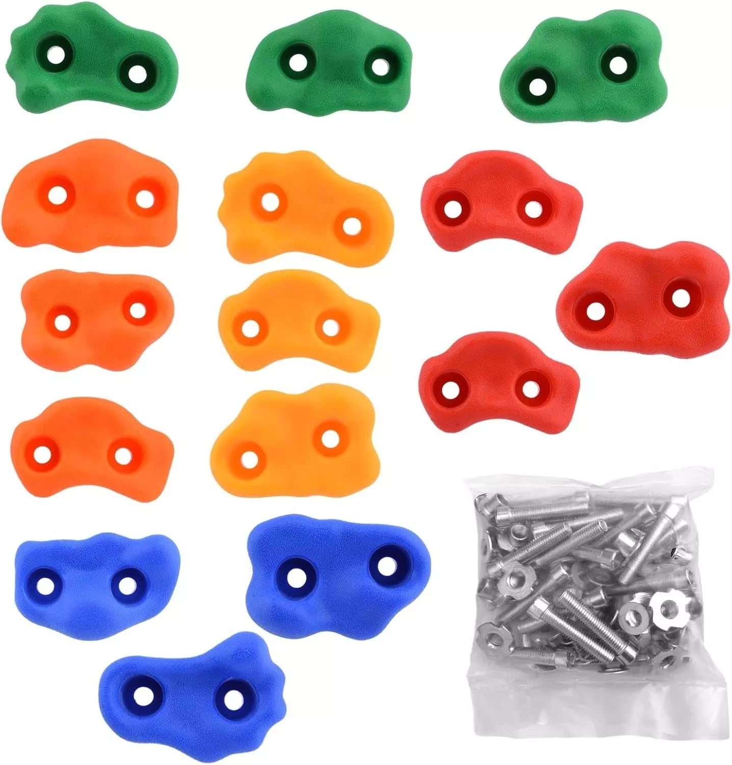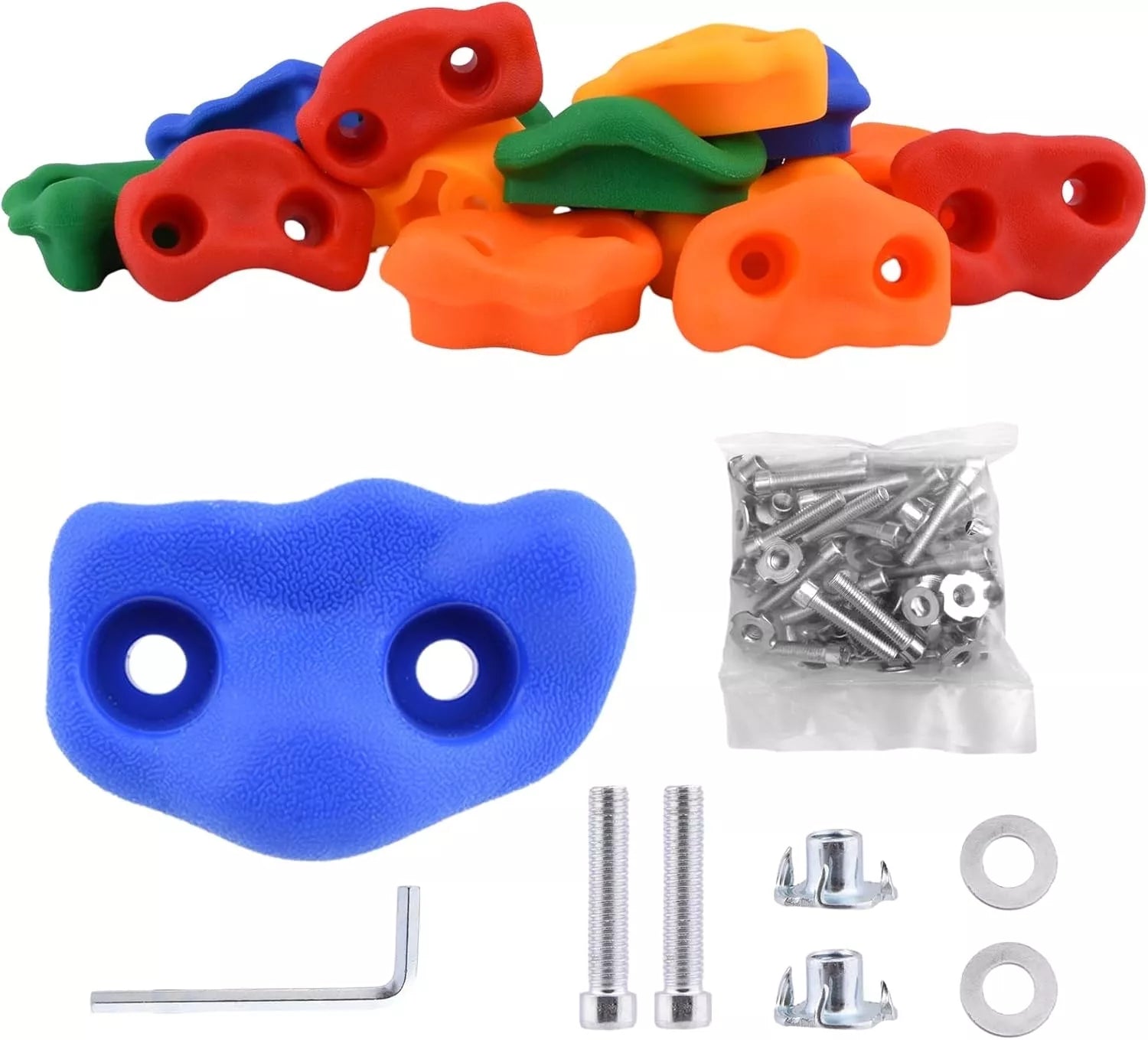 Rinkinį sudaro: 10 laipiojimo rankenų, tvirtinimo varžtai ir veržlės