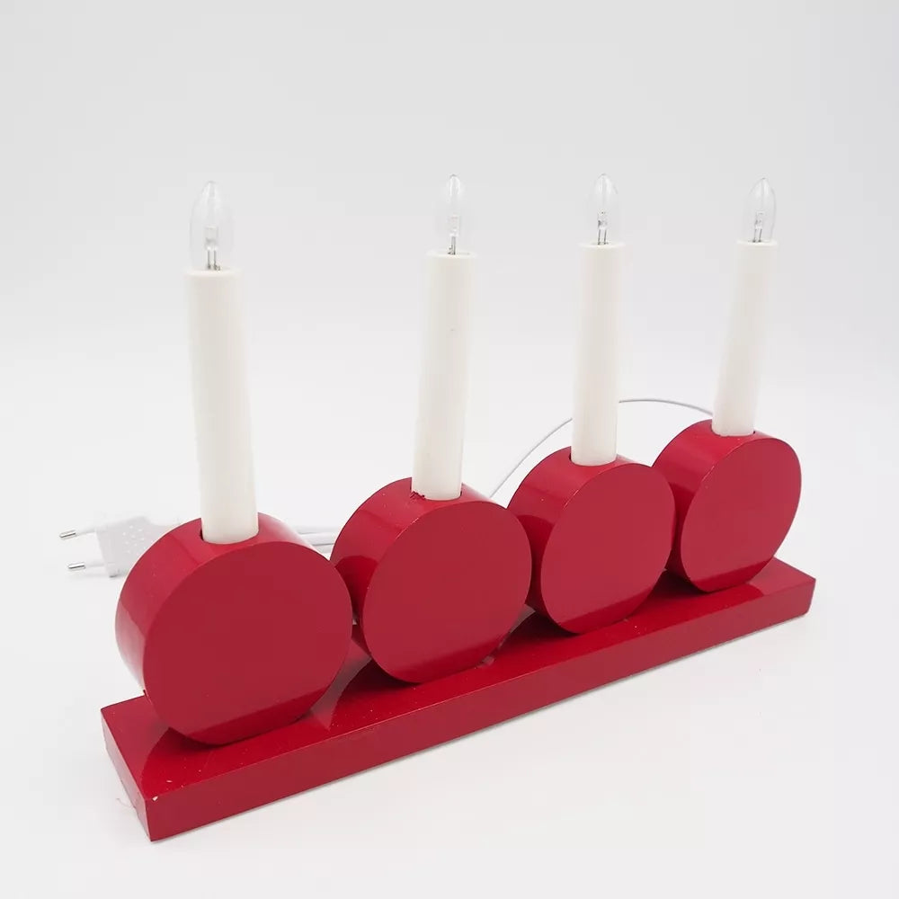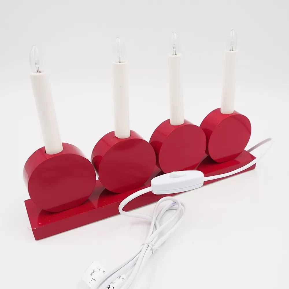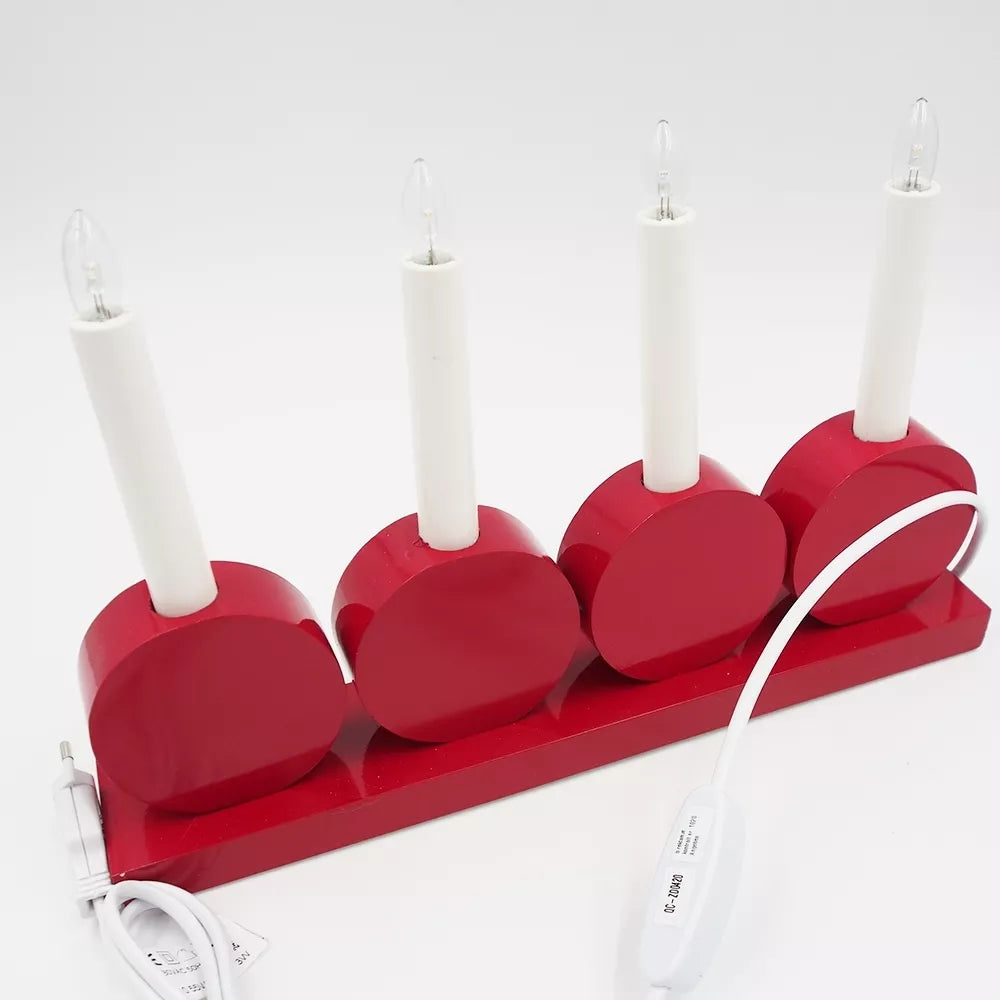 Elektrinis medinis žvakidės stovas (raudonas, 4 lempučių)