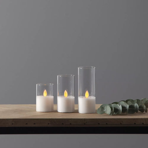 LED žvakė su tikro stiklo gaubtu, 10 cm