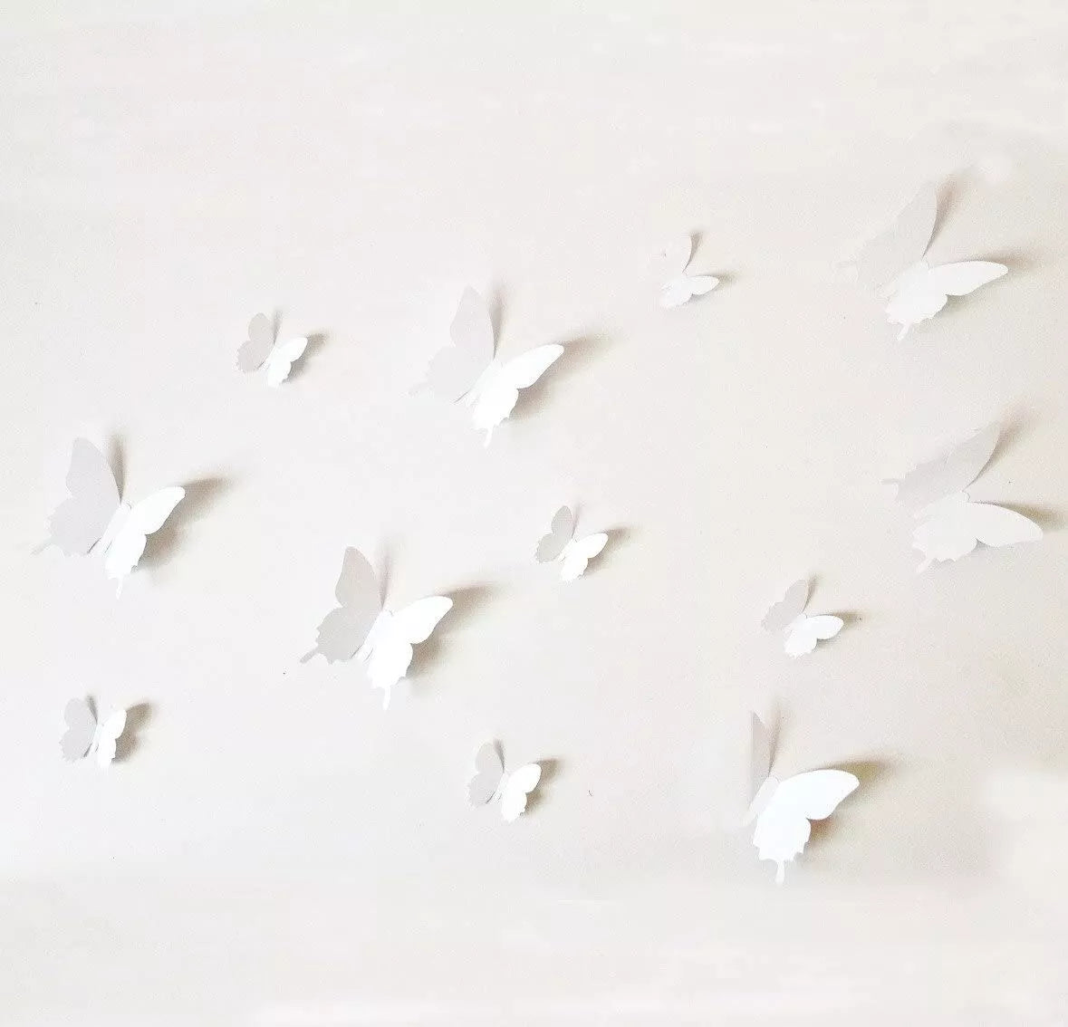 12 skirtingų dydžių drugelių rinkinys. Jie puikiai tinka papuošti vaiko kambarį (pvz., ant sienos). Galimybė nustatyti sparnus į bet kokią padėtį. Lengvas montavimas ant bet kokio paviršiaus, nes naudojami dvipusiai lipdukai.