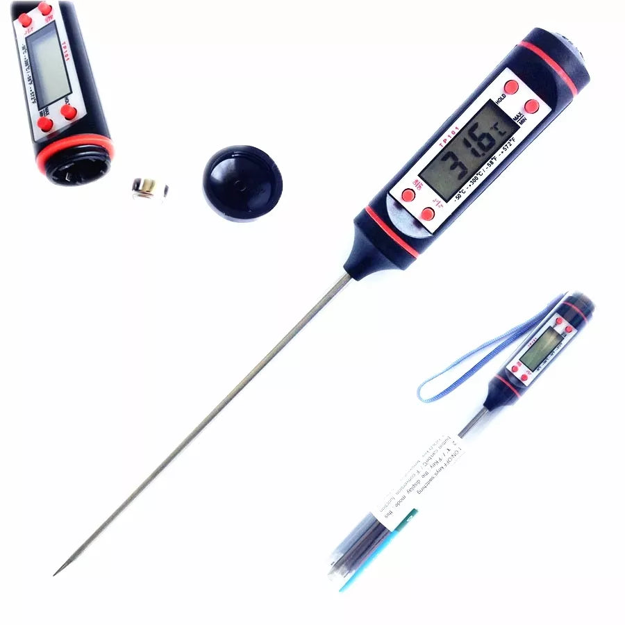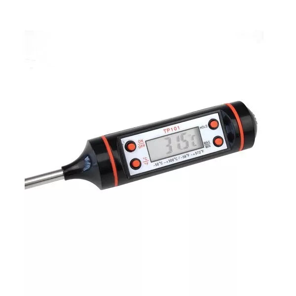 Matavimo teperatūra: -50~+300°C(-58~+572°F)Paklaida: ±1°C(1°F)Išmatavimai: 228*21*21mmParduodamas su baterijomis (1,5 V AG13 baterija)Galima rinktis °C ir °FAutomatinis išsijungimas po 15min.