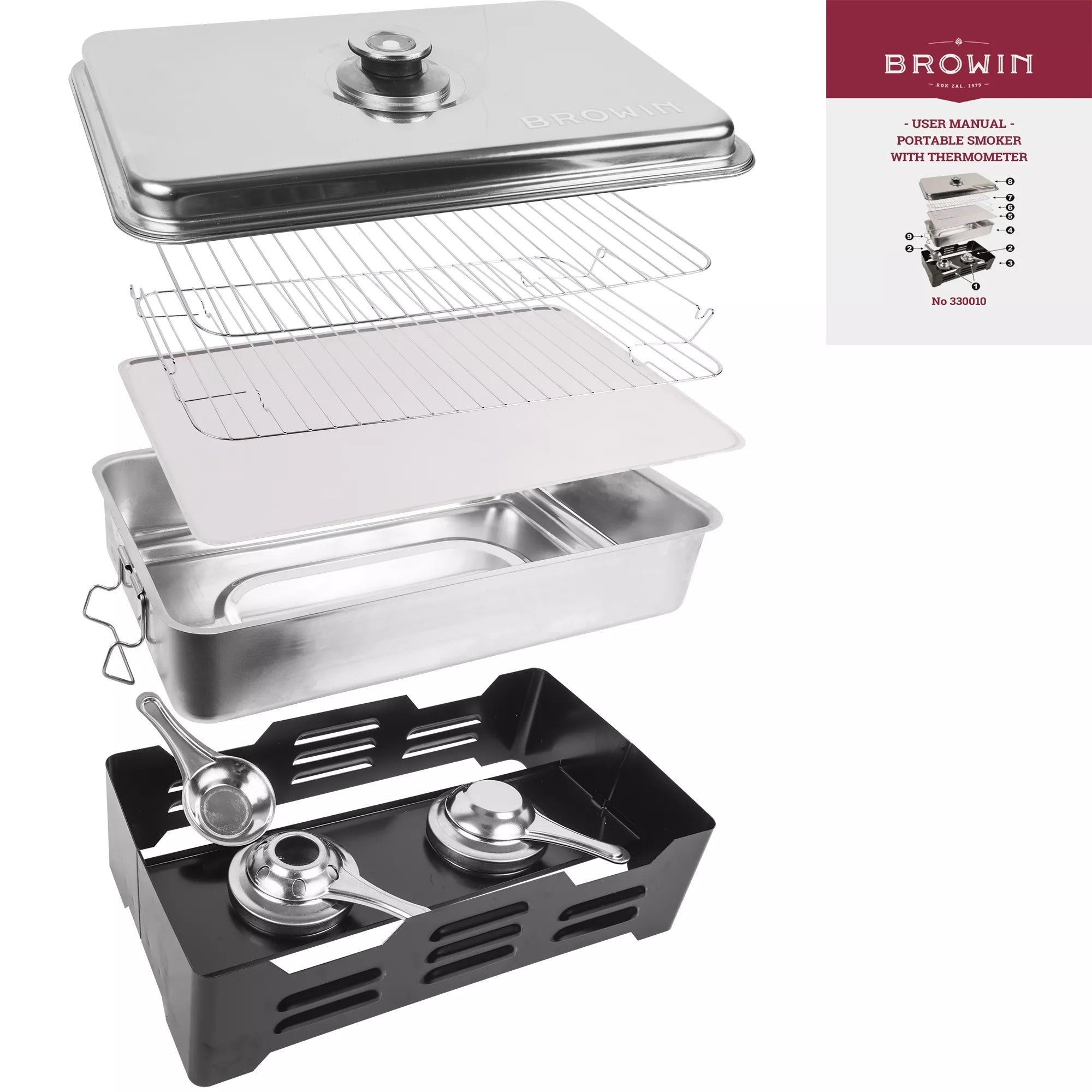 Ši kompaktiška mobili rūkykla leidžia paruošti gardžius rūkytus patiekalus net ir mažose erdvėse, pavyzdžiui, balkone ar terasoje. Nepaisant mažo dydžio, įrenginys suteikia daug galimybių – galite rūkyti žuvį, mėsą, sūrį, kiaušinius ir dešras. Rūkykla pagaminta iš aukštos kokybės nerūdijančio plieno, tinkamo sąlyčiui su maistu, todėl yra patvari, higieniška ir lengvai prižiūrima.