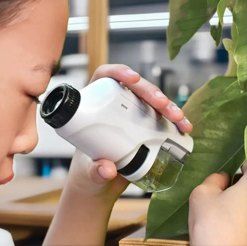 Mokomasis mikroskopas vaikams su dideliu padidinimu (120-60x). Papildomas LED apšvietimas palengvina pasiruošimo stebėjimą. Įrengtas sklandus židinio reguliavimas (FOCUS). Paprastas valdymas dėl mažo dydžio ir kompaktiškos konstrukcijos. Galima patogiai nešioti ant nuimamo dirželio. Rinkinyje yra pasiruošimo stebėjimui rinkinys.