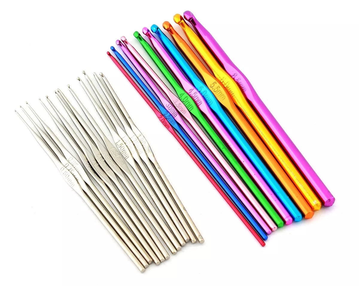22 aukštos kokybės nėrimo kabliai iš aliuminio.Platus dydžių asortimentas (nėrimo kabliukai nuo 0,6 iki 6,5 mm).Praktiškas dėklas, uždaromas užtrauktuku.Puikiai tinka tiek mėgėjams, tiek profesionalams.Specifikacija: